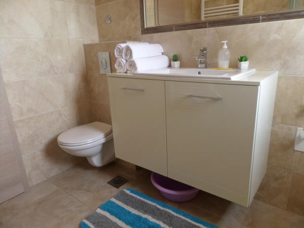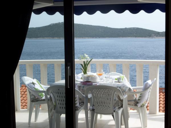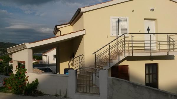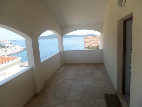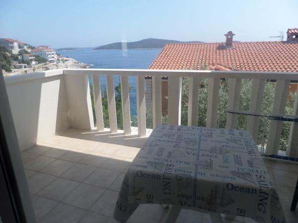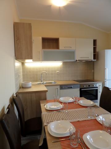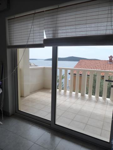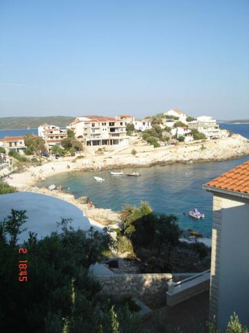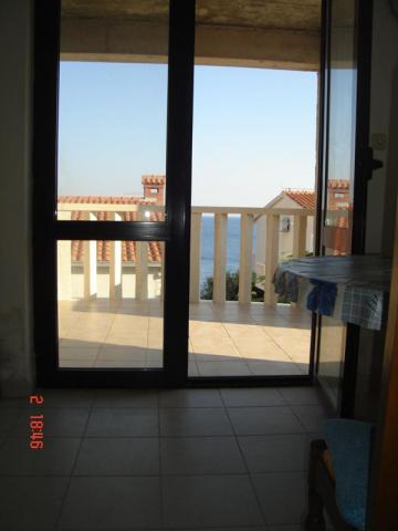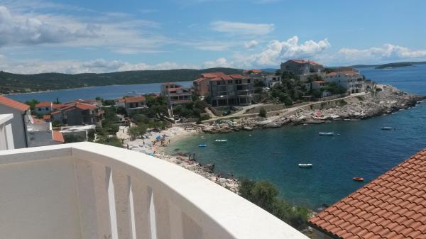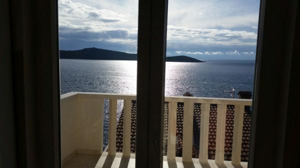 Moderní byt s velkou terasou. Výhled z terasy báječného bytu vybaveného vším, co potřebujete. Můžete si vybrat konkrétní platformu, která je 20 kroků od domu nebo oblázková pláž v malebné zátoce 90 metrů od bytu nebo 200 m oblázková pláž s možností zapůjčení plaveckého vybavení. V obci je obchod a bar. Do domu jezdí každý den auto s chlebem a sladkými rohlíky. Majitelé byli nápomocní a přátelští. Byla to skvělá dovolená. Děkuju. Alexander