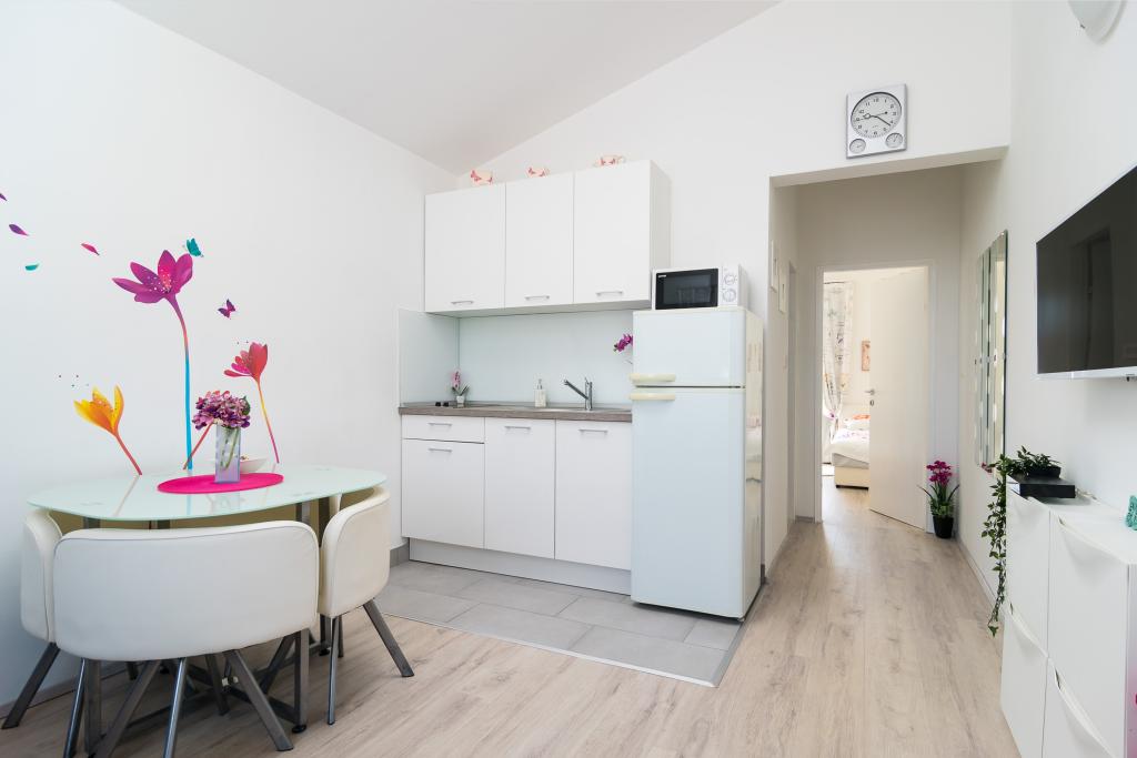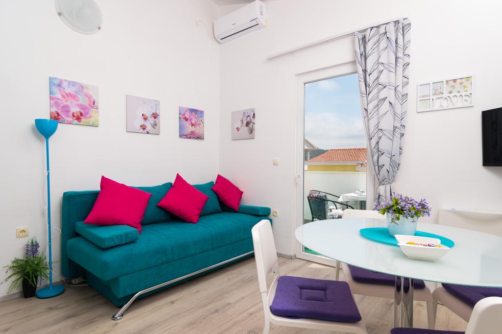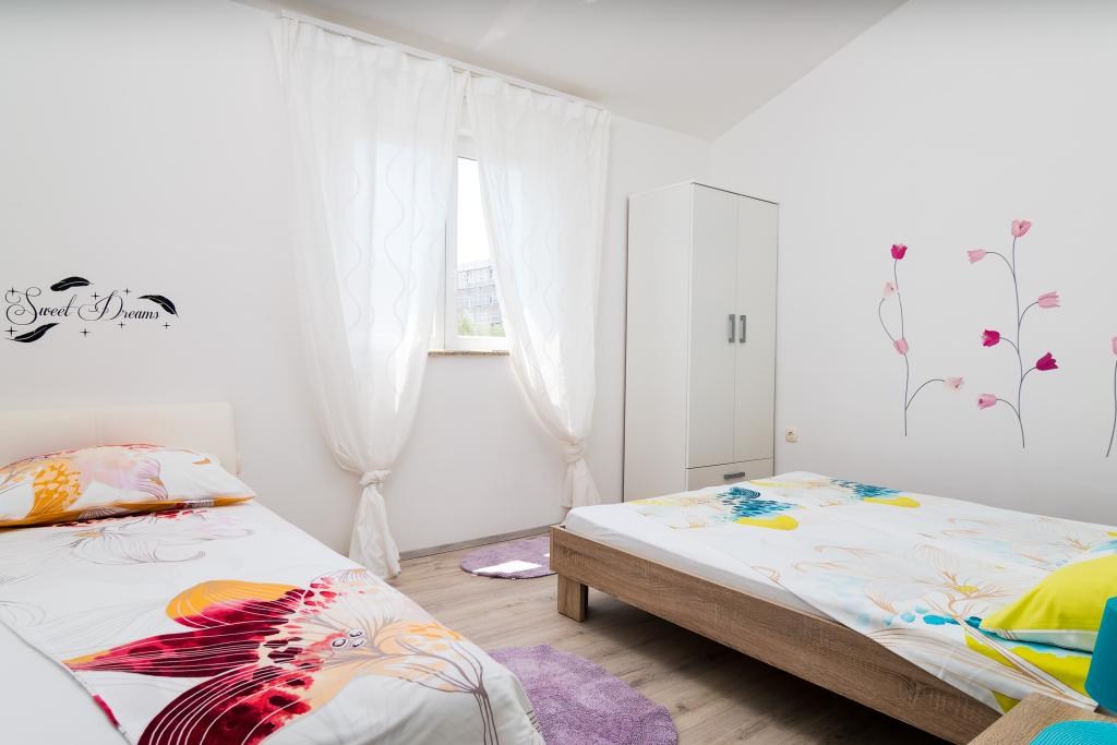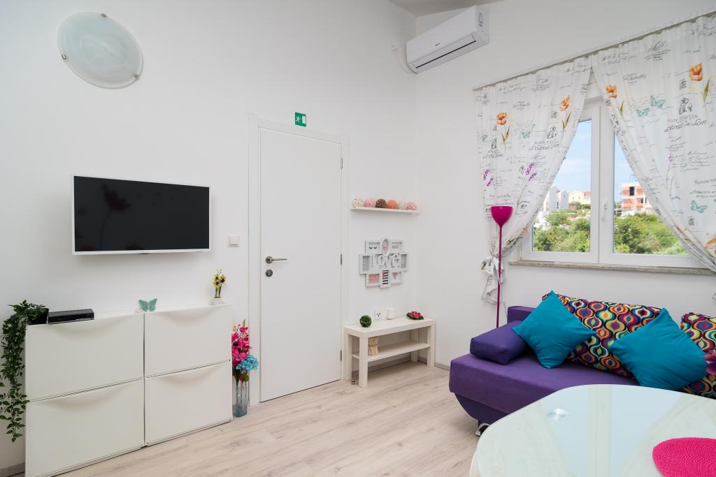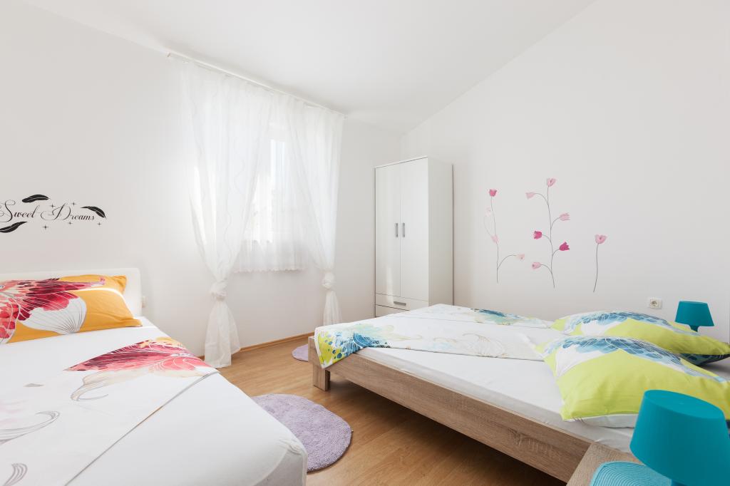 3 apartmány k pronájmu, které se nacházejí v Sevidu, pouhých 80 metrů od moře a pláže. Všechny apartmány se skládají z jedné ložnice, obývacího pokoje s kuchyňským koutem, koupelny a balkonu. Apartmány jsou nové a plně vybavené Wi-Fi internetem, LCD TV a klimatizací. V budově je k dispozici soukromé parkoviště. Ubytování se nachází v centru města, v bezprostřední blízkosti pláže, trhu a restaurací. Sevid je malá a klidná oáza na Jadranské riviéře, známá pro svou velkou oblázkovou pláž a křišťálově čisté moře a průzračnou vodu. Dům se nachází v samém centru města, v blízkosti supermarketů a restaurací.