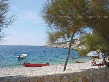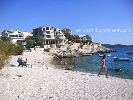 Pláž dům se dvěma byty na nábřeží, 10 m oblázky pláže. Byt v přízemí (4 +1) a jeden byt (2 +2), v prvním patře s nádherným výhledem na moře, pláže a ostrovy. Poskytují klidnou dovolenou v Sevid - Trogir Riviera, se těší krásu slunečné zátoky a křišťálově čisté vody, se téměř skryté části chorvatského pobřeží.