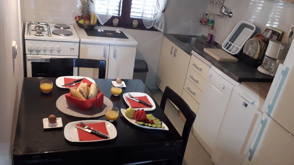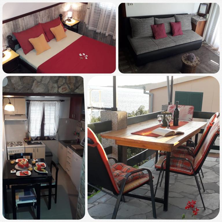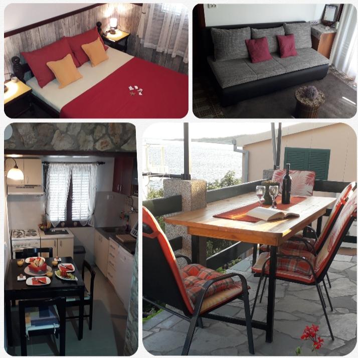 Byt se nachází v přízemí domu jen 50 m od moře. Skládá se z jedné ložnice s manželskou postelí a v obývacím pokoji je rozkládací pohovka přeměněna na postel pro další dvě osoby , Je vybaven kompletní kuchyní, včetně myčky a v koupelně je myčka. Wi-fi je zdarma, velká plochá televize je schopna sledovat kolem 50-60 programů. Objekt je klimatizovaný (klimatizace). Na terase je stůl se židlemi a dvoumístný pro pohodlnější pobyt venku a výhled na zahradu, kde si hosté mohou během pobytu užívat zeleninu (rajčata, salátový pepř, fíky ...). velký krb může volně připravovat jídla z grilu. Parkování u objektu (dům se dvěma soukromými pronajatými byty) Hostitel se nachází v nedalekém areálu a je vždy k dispozici hostům