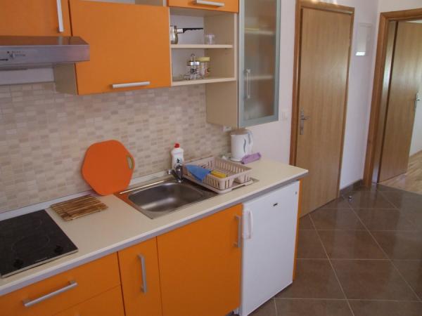 Každý apartmán má jednu ložnici, kuchyň / obývací pokoj, koupelna a terasa. V domě je velké uzavřené parkoviště, 2 venkovní gril a velký stůl pro hosty gril.