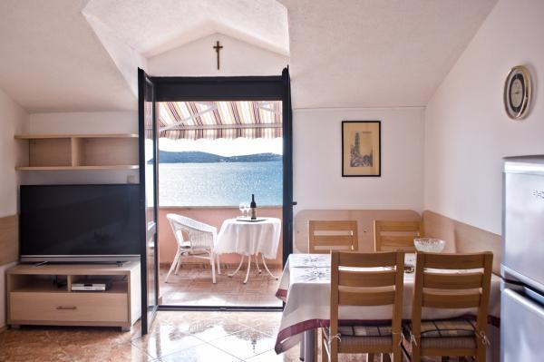 Doporučuji. Byli jsme zde moc spokojeni. Sedí venku před apartmánem, kde jsme každý večer seděli a byli jsme spolu 18. Moře je extra čisté kousek je pláž a dále jsou betonové plotny. Asi 400 metrů v promenádě je jeskyně přímo u moře skryté je unikátní koupání. Majitel má své víno a prodává za solidní cenu, koupili jsme láhve, protože nám moc chutnalo. V okolí je obchod a jedna hospoda a na pláži. Je zde i půjčovna šlapadel a atd. Každé ráno v 7:00 prodávají před obchodem Ribola ryby, ale mají celkem nadsazené ceny, lepší je koupit ryby v Rogoznici přímo z lodě.