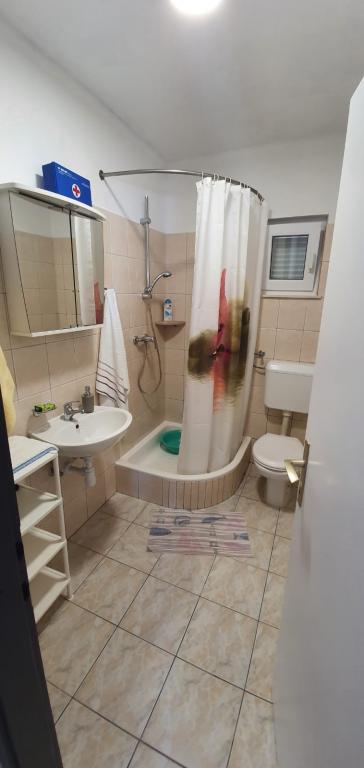 Skvělé, chladné místo. Krásné výhledy. Krásný, čistý a velmi pohodlný byt, dobře vybavený a elegantní. Velmi milí hostitelé, velmi užitečné. Pláž je velmi blízko, vybavená lehátky a důmyslným slunečníkem. Teplá voda. Úžasná a v Chorvatsku velmi vzácná příležitost projít se po pobřeží. Nakupovat lze v nedaleké samoobsluze nebo ve stáncích. Z celého srdce to doporučujeme. Určitě se tam vrátíme.