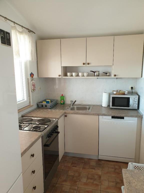 Apartmán se nachází na krásném místě v těsné blízkosti dvou pláží, kde není ani uprostřed sezóny příliš mnoho lidí. Apartmán je čistý, prostorný a vybavený vším pro pohodovou a klidnou dovolenou. Velká terasa je v takové poloze, že si ji můžete užívat celý den. Hostitelé jsou velmi přátelští a ochotní, paní Jasna nás opravdu vřele přivítala, takže se určitě vrátíme. Měli jsme opravdu úžasnou dovolenou. Děkuju