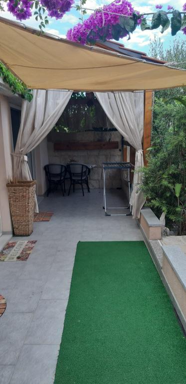 Nově postavená a plně vybavené apartmány. Dobře udržovaná zahrada s zahradou a zakrytým prostorem pro denního odpočinku, ze kterého přímý přístup na pláž! Sevid je malé vesnici nedaleko Trogiru s rodinnými domy a betonové pláže a je ideální pro klidnou dovolenou. Je to středomořské město, nedotčená příroda, křišťálově čisté moře, které vyzařuje klid a ticho, daleko od městských center a každodenní dopravní zácpy.
