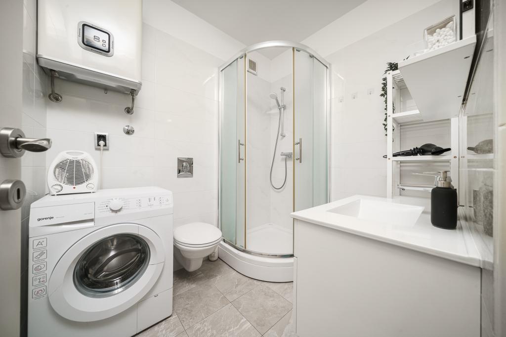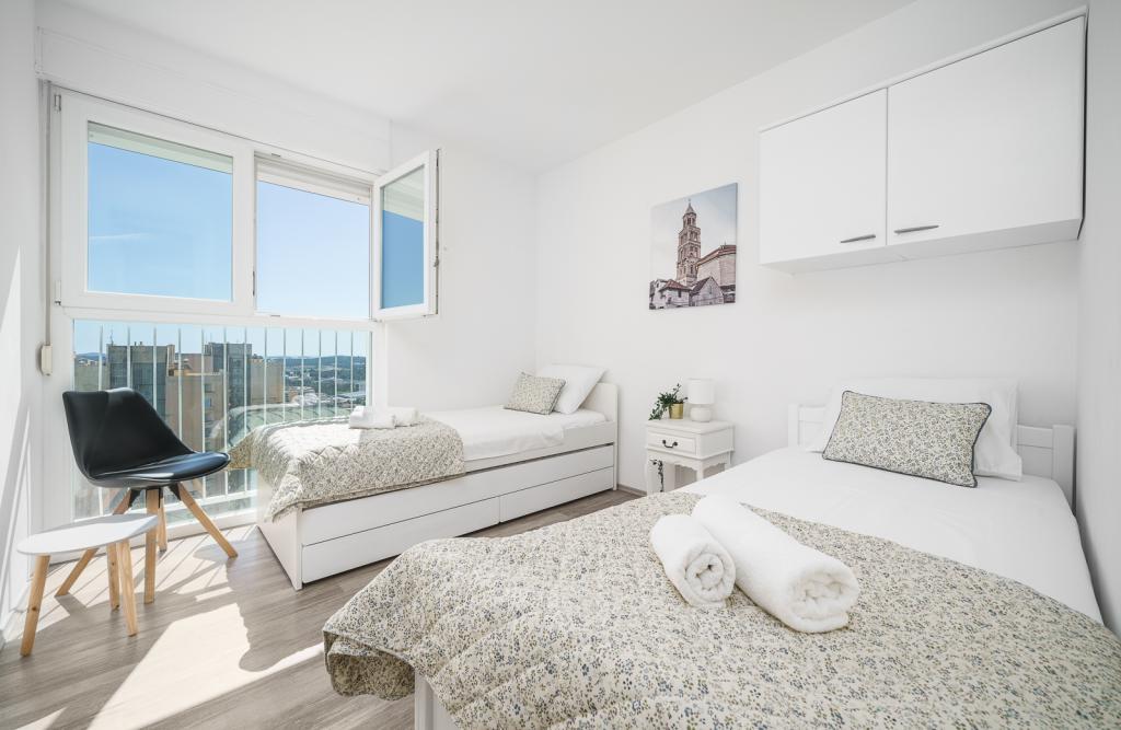 9th Floor Apartment je moderně vybavený apartmán v budově nacházející se v 9. patře, která nabízí nádherný výhled na moře a ostrovy nedaleko Šibeniku. Plocha bytu je 70 metrů čtverečních a skládá se ze dvou ložnic, obývacího pokoje, kuchyně s jídelnou, toalety a terasy s výhledem na moře. Zařízení se nachází v klidné části města, cca 15 minut chůze od centra města. Parkování je zdarma, není možné rezervovat parkovací místo