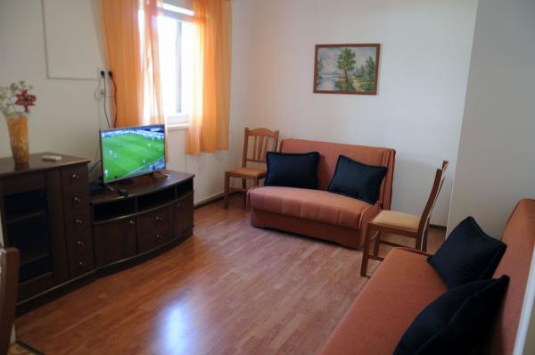 V blízkosti našeho apartmánu jsou dva parky, z nichž jeden má dvě vyhlídky a upravenou dráhu a je ideální pro ty, kteří mají rádi procházky. Nacházíme se 5 minut jízdy od centra města a nejbližší městské pláže Banj. Ostatní pláže jsou vzdálené 10 minut jízdy a všechny pláže jsou oblázkové a příjemné. Do národního parku Krka dojedete za pouhých 20 minut a do národního parku Kornati za 5 minut. V naší bezprostřední blízkosti (50 m.) se nachází prodejna Lidl, zatímco 150 m. Jsou zde prodejny Konzum a Djelo. Pro ty, kteří mají rádi \\\\\\\\ Game of Thrones \\\\\\\\ musíme zdůraznit, že seriál se natáčel v pevnosti, která je 10 minut chůze od našeho bytu. Nabízíme klidný byt s dostatkem stínu, v blízkosti zahrady, ze které si můžete vychutnat zdravé bio ovoce sezónní zeleniny. Byt dále nabízí dvě toalety a samostatnou (od toalety) koupelnu s prostorným sprchovým koutem. Kuchyň v ceně. Parkování je zajištěno u nás