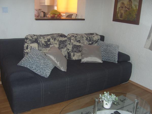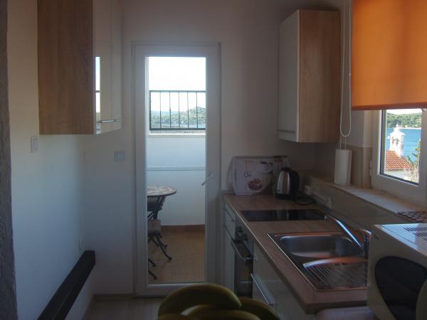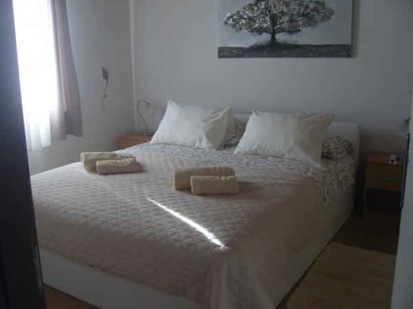 Vybavený klimatizovaný apartmán s parkovacím stáním v garáži. Šířka dveří 2,50 a výška 2 metry. Je dlouhá asi šest stop. Vzdálenost od pláže a starého města je 5 min. Nejlepší pro 2 osoby, ale v obývacím pokoji je pohovka pro 2 osoby. Cena jde do WiFi a všechno je uvedeno. Byt se nachází v podkroví s krásným výhledem.