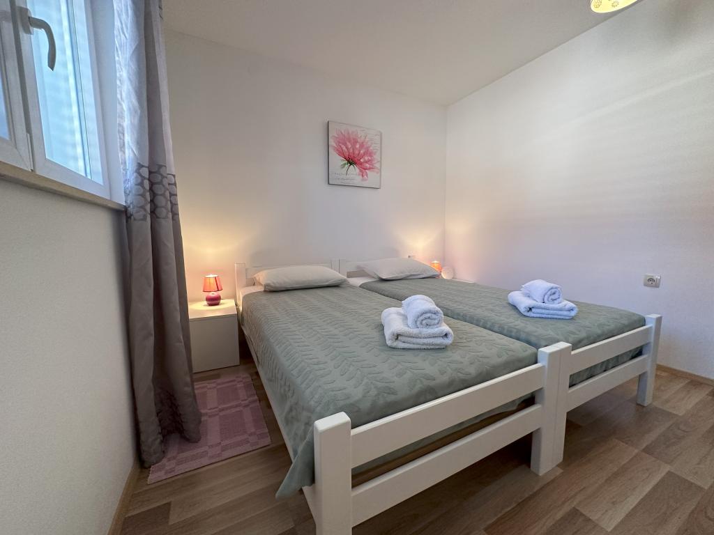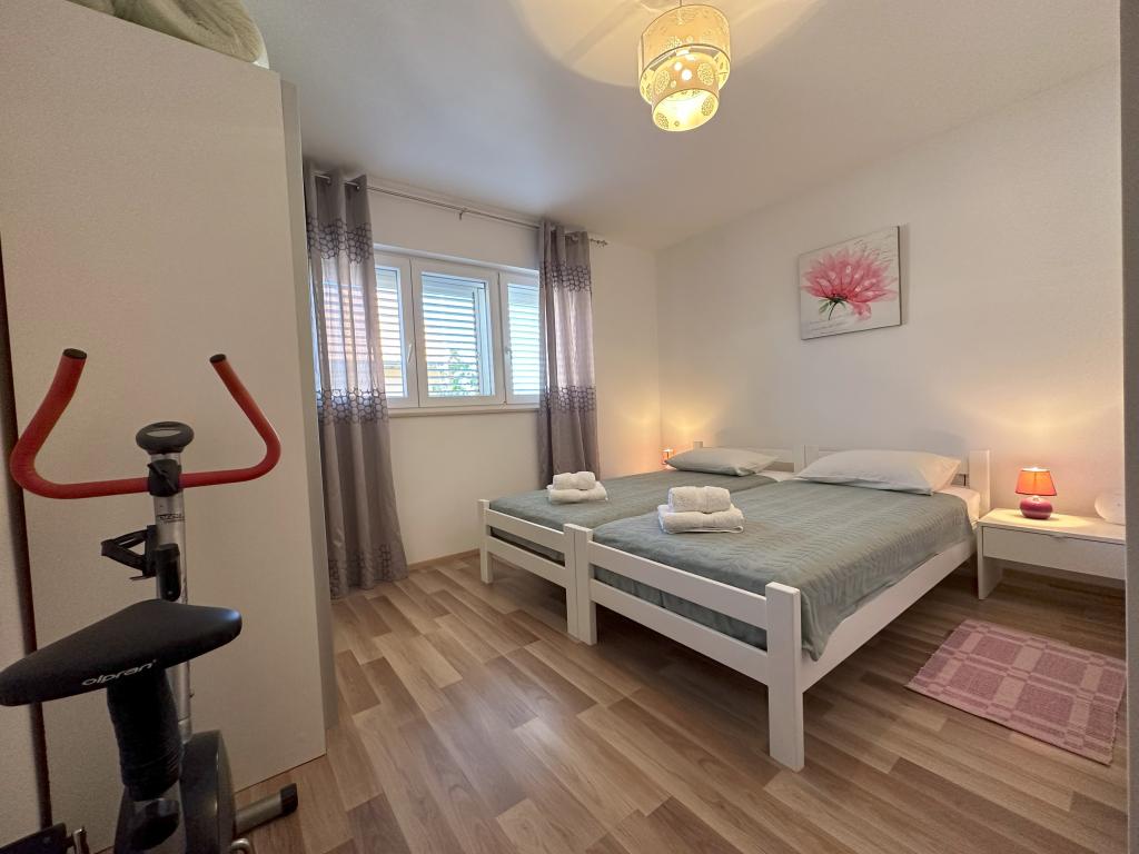 Apartmán MAS se nachází 15 minut chůze od centra města Šibenik s bohatým kulturním a historickým dědictvím. Útulný, moderní a nově zrekonstruovaný, vhodný pro 4 osoby, má dvě ložnice. klimatizované, s TV, internetem, vybavenou kuchyní a koupelnou. Součástí apartmánu je také rozkládací pohovka jako přistýlka. Apartmán MAS se nachází v přízemí rodinného domu se samostatným vchodem a nabízí soukromí každému hostu. Z terasy obklopené zelení se rozprostírá výhled na moře a ostrovy a městskou pláž Banj, která je vzdálená 10 minut chůze.