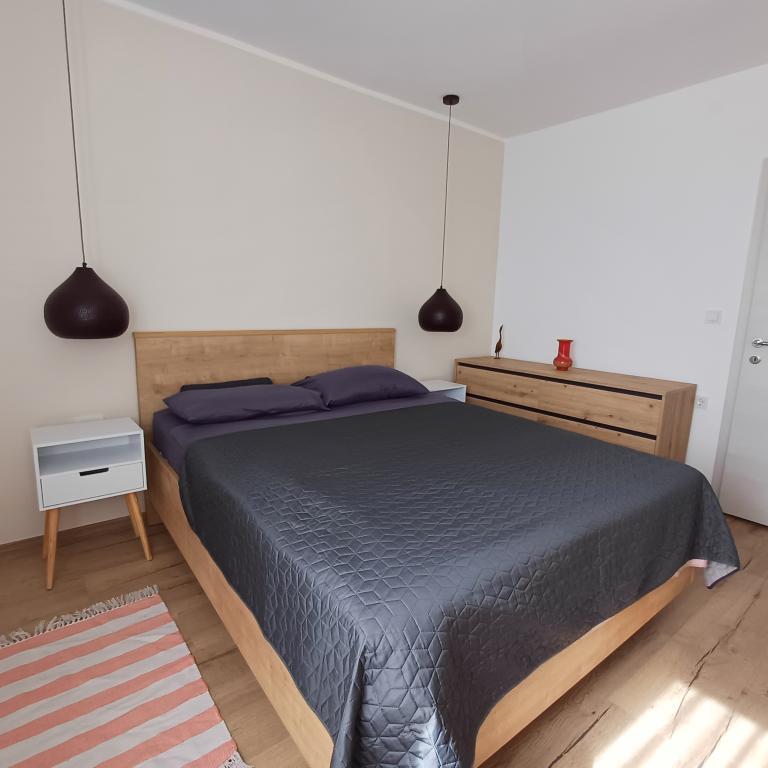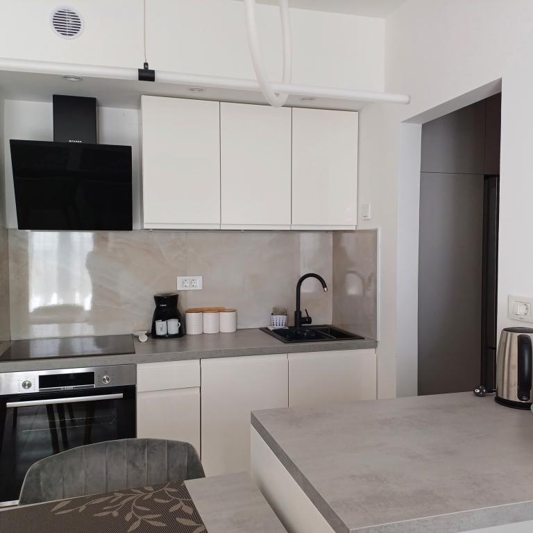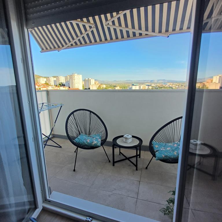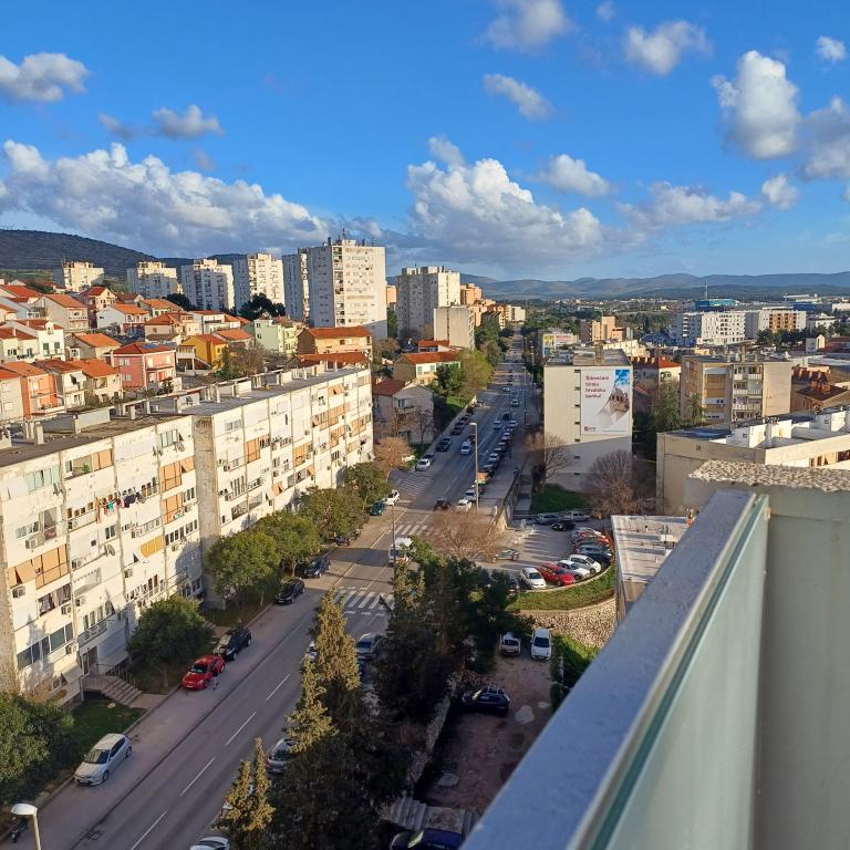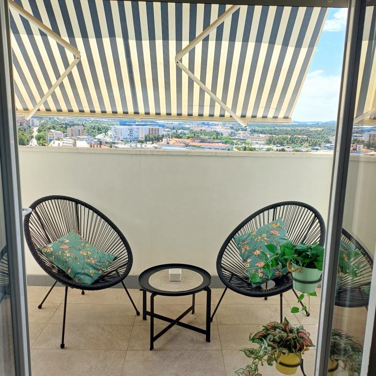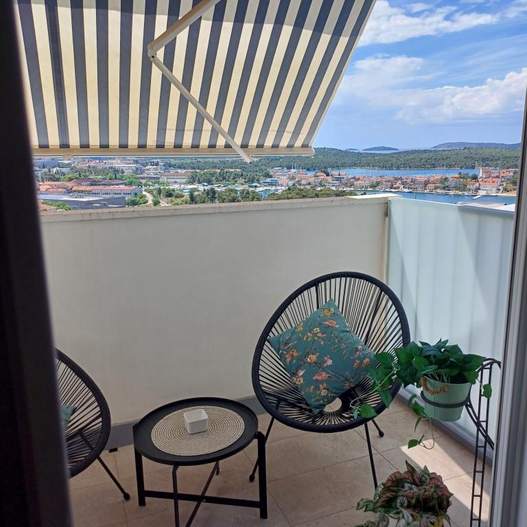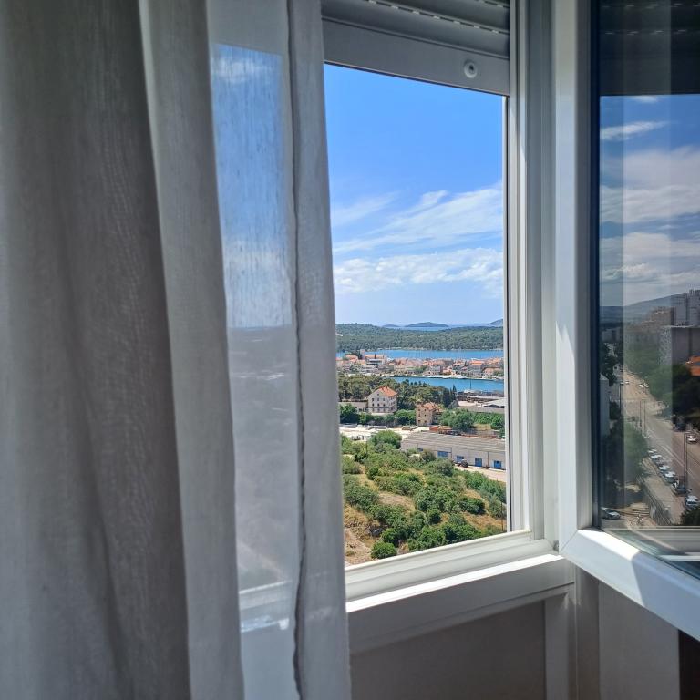 Luxusní apartmán se nachází v 10. patře bytového domu v Šibeniku ve výborné lokalitě, 20 minut chůze od starého centra města a městské pláže Banj. Luxusní ubytování s balkonem s krásným výhledem na moře a město nabízí hostům příjemný a relaxační pobyt. Byt se skládá z prostorné ložnice, chodby, koupelny se sprchovým koutem, vysoušečem vlasů a pračkou. Obývací pokoj a jídelna jsou v prostoru s moderní kuchyní zařízenou pro krátkodobý i dlouhodobý pobyt a obsahuje nádobí, kuchyňské náčiní, sporák, troubu, myčku, lednici, rychlovarnou konvici a kávovar. Apartmán je klimatizovaný a hosté mají k dispozici TV a bezplatné Wi-Fi. Veřejné parkoviště se nachází před samotnou budovou. Jakmile opustíte budovu a přejdete ulici, ve vzdálenosti 30 m se nachází obchod s potravinami, lékárna a kavárna, banka, pošta, pizzerie, posilovna, kadeřnictví, nákupní centrum, autobusové nádraží , přístaviště lodí jsou ve vzdálenosti 500 m - 700 m.