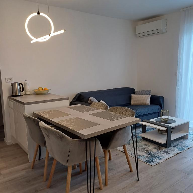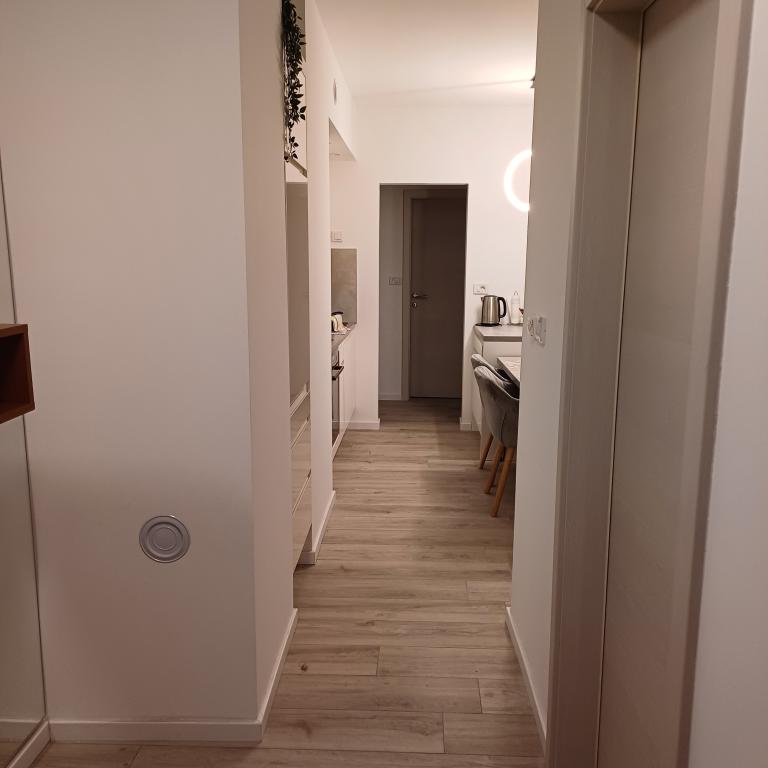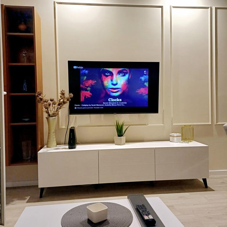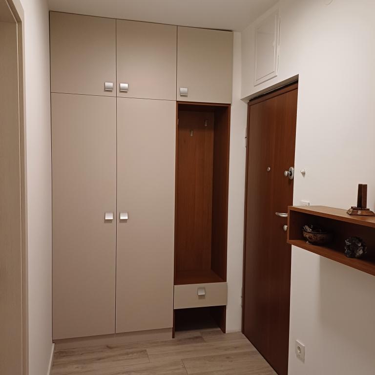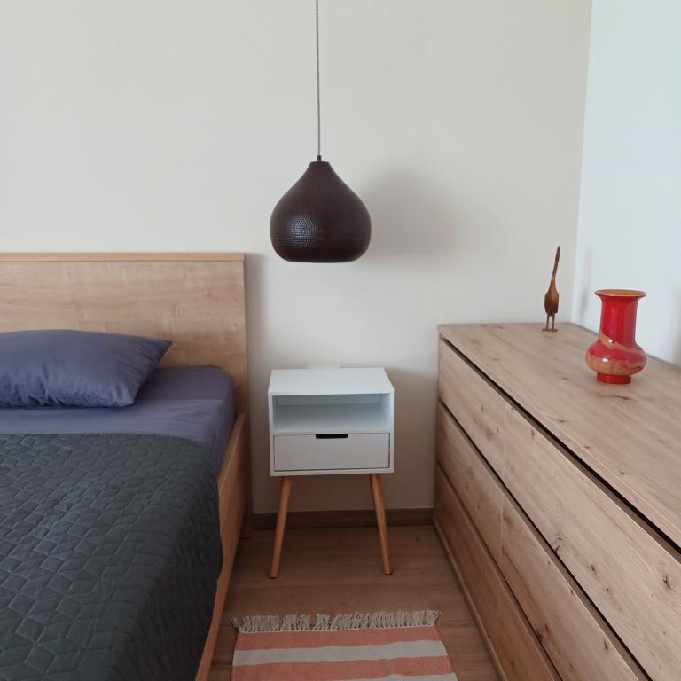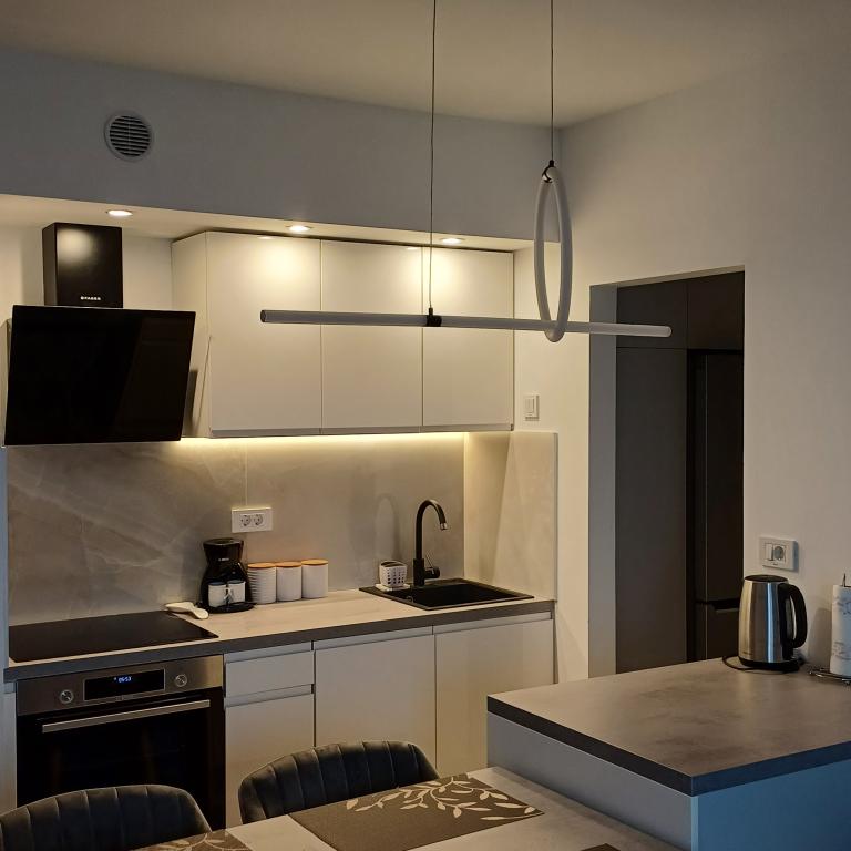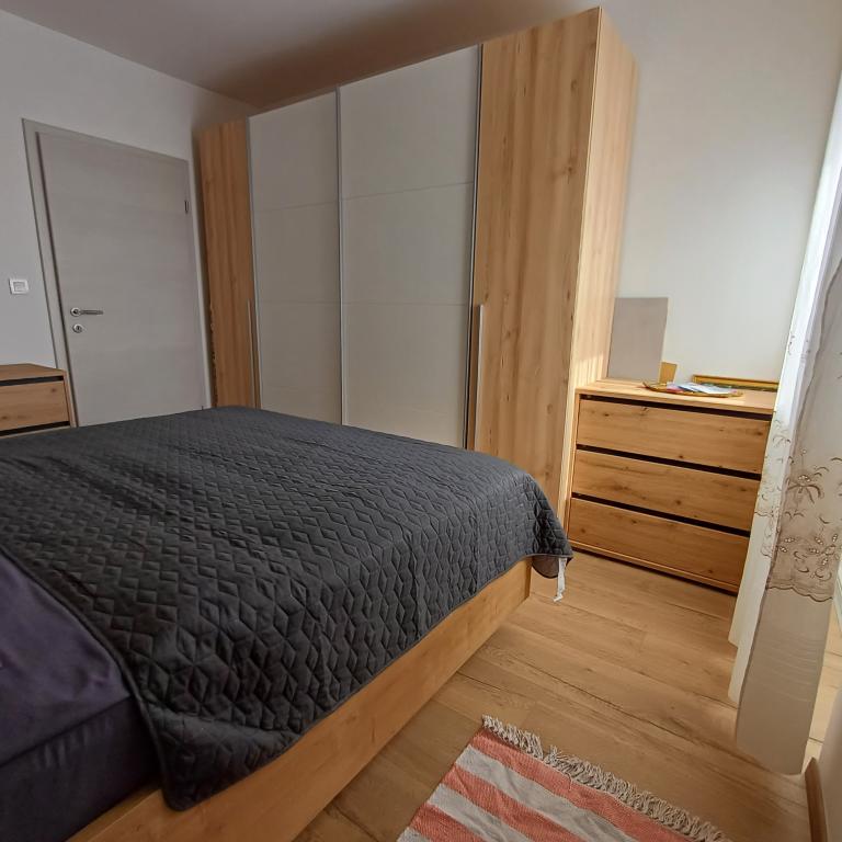 Luxusní apartmán se nachází v 10. patře bytového domu v Šibeniku ve výborné lokalitě, 20 minut chůze od starého centra města a městské pláže Banj. Luxusní ubytování s balkonem s krásným výhledem na moře a město nabízí hostům příjemný a relaxační pobyt. Byt se skládá z prostorné ložnice, chodby, koupelny se sprchovým koutem, vysoušečem vlasů a pračkou. Obývací pokoj a jídelna jsou v prostoru s moderní kuchyní zařízenou pro krátkodobý i dlouhodobý pobyt a obsahuje nádobí, kuchyňské náčiní, sporák, troubu, myčku, lednici, rychlovarnou konvici a kávovar. Apartmán je klimatizovaný a hosté mají k dispozici TV a bezplatné Wi-Fi. Veřejné parkoviště se nachází před samotnou budovou. Jakmile opustíte budovu a přejdete ulici, ve vzdálenosti 30 m se nachází obchod s potravinami, lékárna a kavárna, banka, pošta, pizzerie, posilovna, kadeřnictví, nákupní centrum, autobusové nádraží , přístaviště lodí jsou ve vzdálenosti 500 m - 700 m.