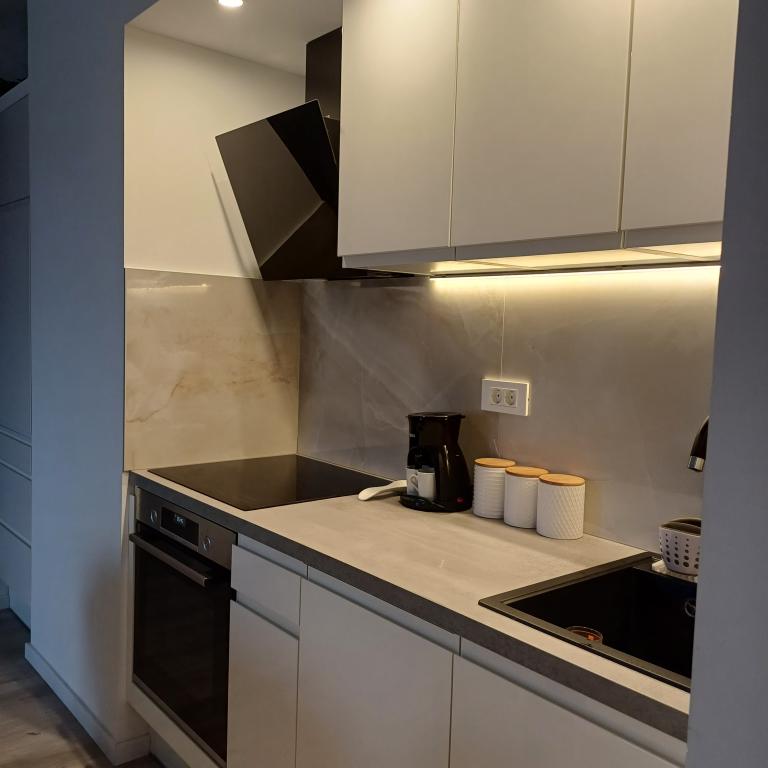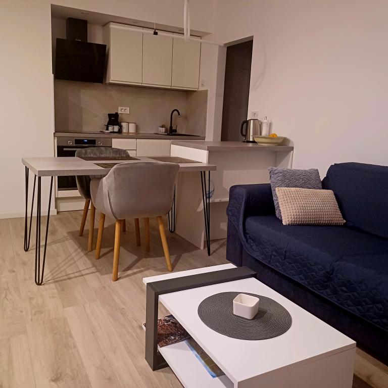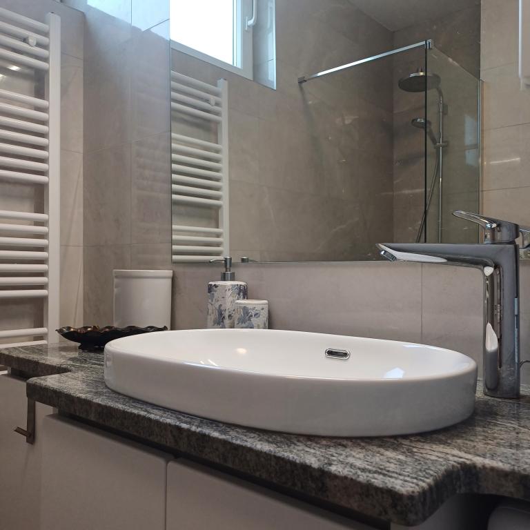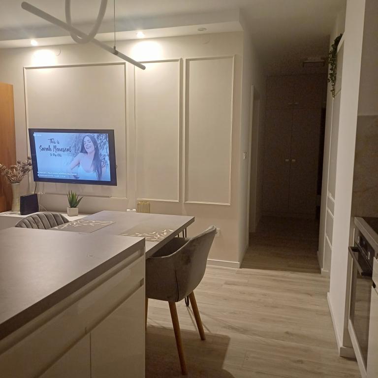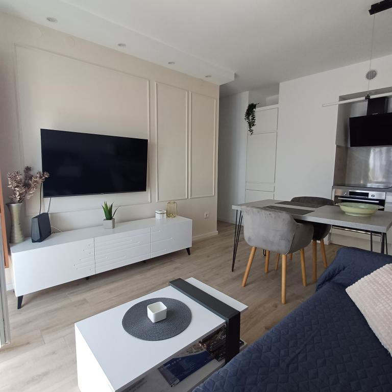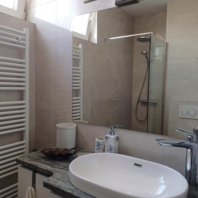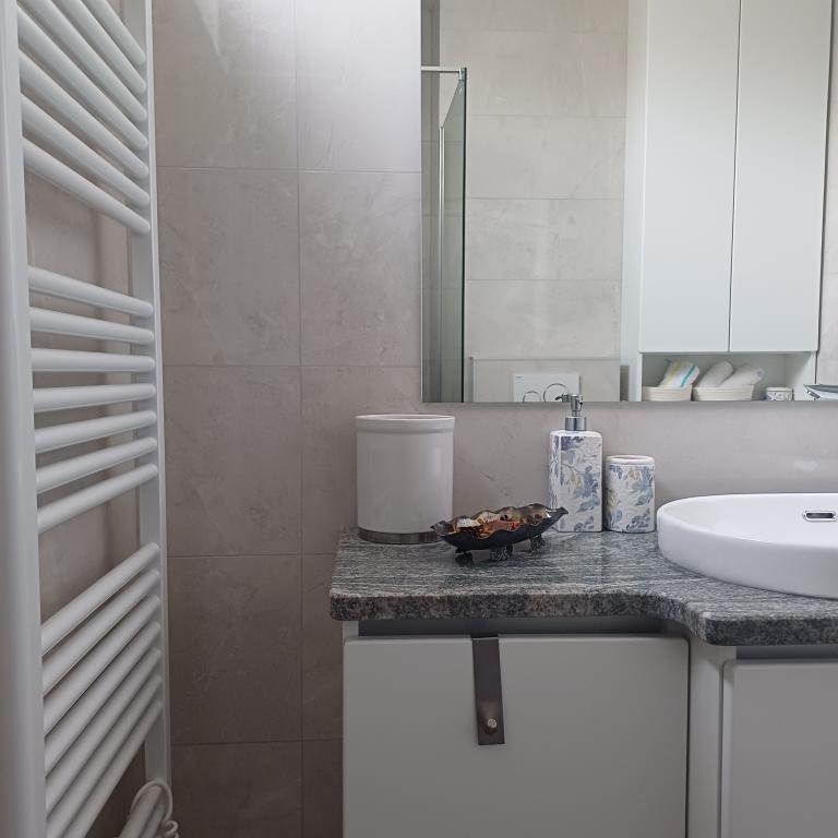 Luxusní apartmán se nachází v 10. patře bytového domu v Šibeniku ve výborné lokalitě, 20 minut chůze od starého centra města a městské pláže Banj. Luxusní ubytování s balkonem s krásným výhledem na moře a město nabízí hostům příjemný a relaxační pobyt. Byt se skládá z prostorné ložnice, chodby, koupelny se sprchovým koutem, vysoušečem vlasů a pračkou. Obývací pokoj a jídelna jsou v prostoru s moderní kuchyní zařízenou pro krátkodobý i dlouhodobý pobyt a obsahuje nádobí, kuchyňské náčiní, sporák, troubu, myčku, lednici, rychlovarnou konvici a kávovar. Apartmán je klimatizovaný a hosté mají k dispozici TV a bezplatné Wi-Fi. Veřejné parkoviště se nachází před samotnou budovou. Jakmile opustíte budovu a přejdete ulici, ve vzdálenosti 30 m se nachází obchod s potravinami, lékárna a kavárna, banka, pošta, pizzerie, posilovna, kadeřnictví, nákupní centrum, autobusové nádraží , přístaviště lodí jsou ve vzdálenosti 500 m - 700 m.
