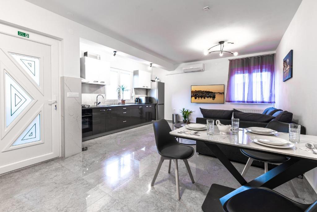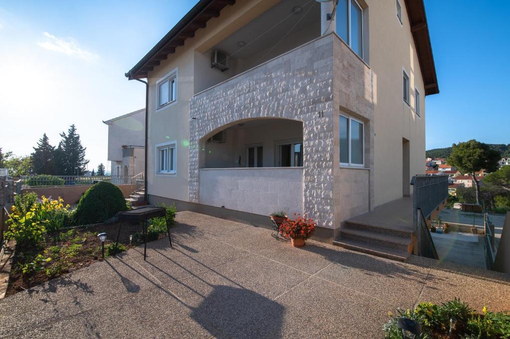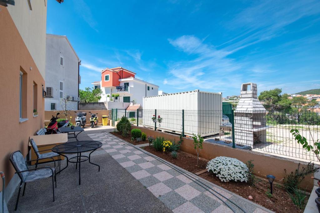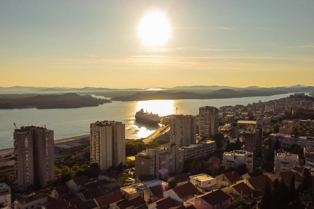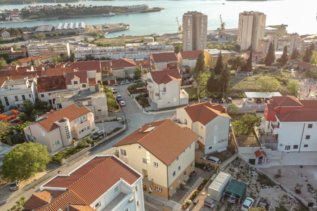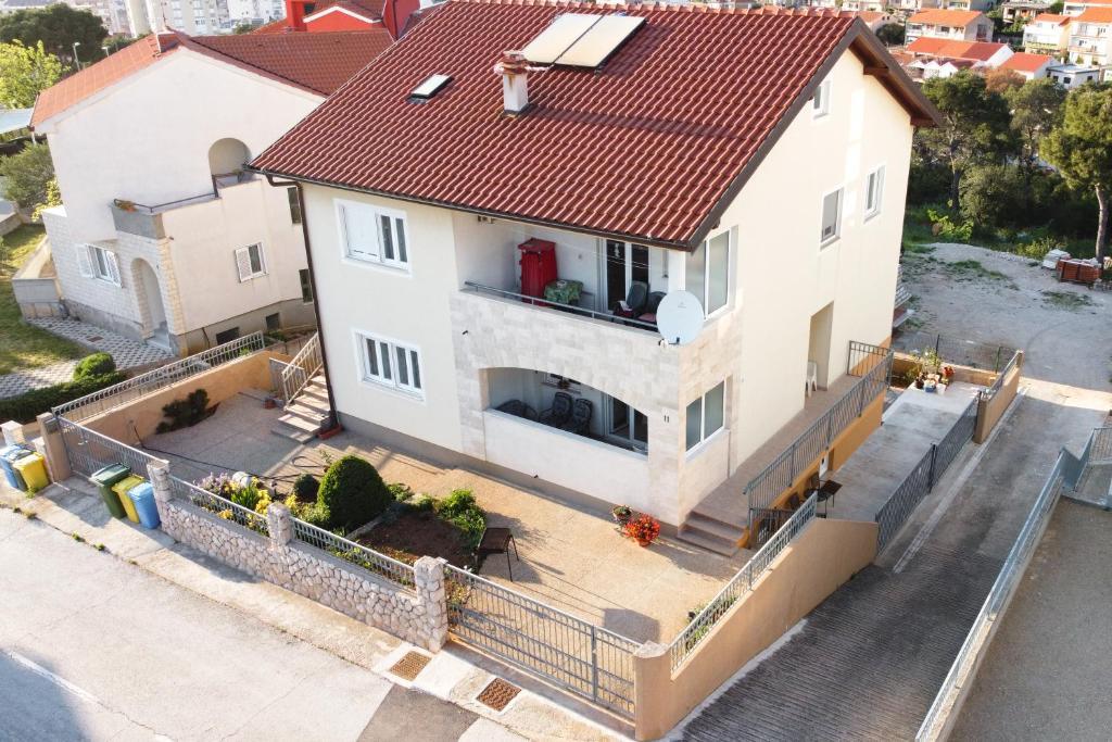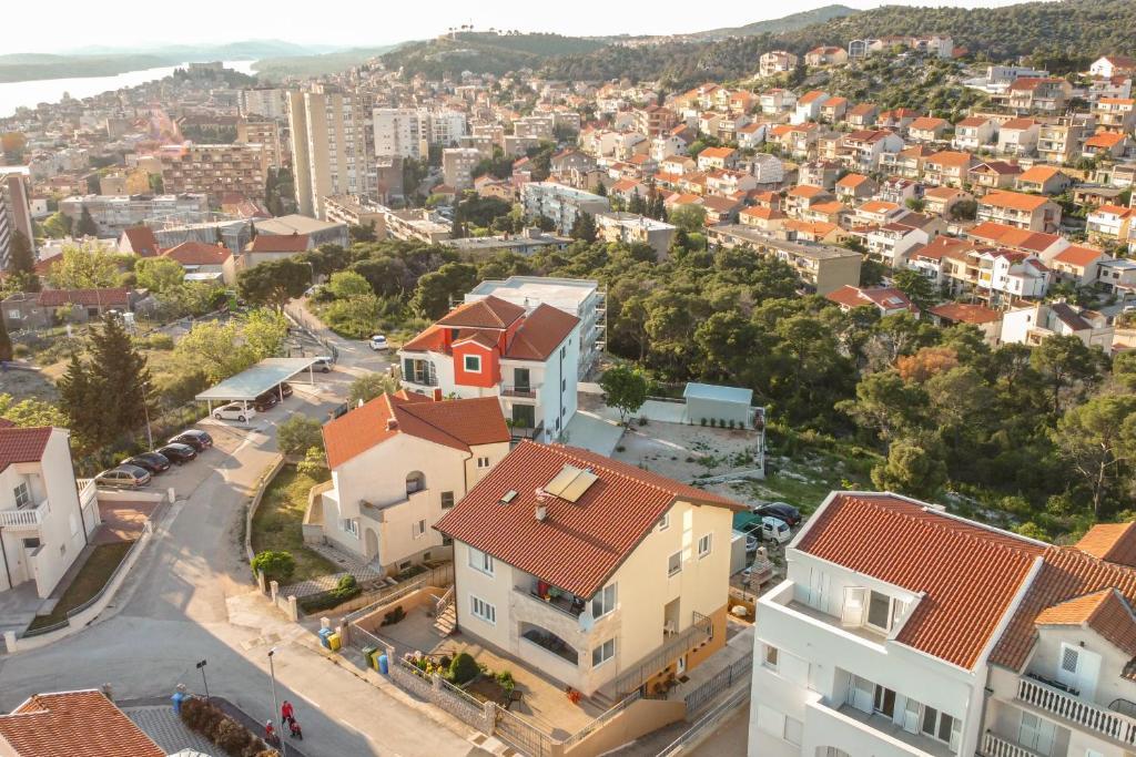 Nabízíme vám tři 4hvězdičkové apartmány, skvěle vybavené a nově zařízené apartmány, v klidné rodinné čtvrti Šibeniku, ideální pro rodiny a hosty, kteří chtějí klidné, bezpečné prostředí, kde mohou relaxovat s vědomím, že oni a jejich majetek jsou v bezpečí. Na místě Vám poskytujeme naše bezplatné soukromé parkoviště, které je hned za budovou, skryté před pohledem do ulice a na které je vidět z bytu. Byt se nachází 20 minut chůze od Starého Města Šibenik a v bezprostřední blízkosti všech městských zařízení. K moři je to 500 metrů a na nejbližší pláže dojedete autem za pouhých 5 minut. Každý apartmán je plně zařízen a vybaven veškerým zařízením a každý má přístup na terasu, balkon a venkovní pec na grilování a pečení.