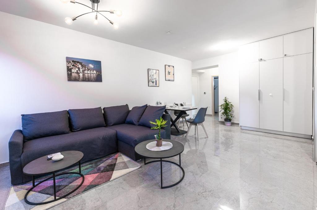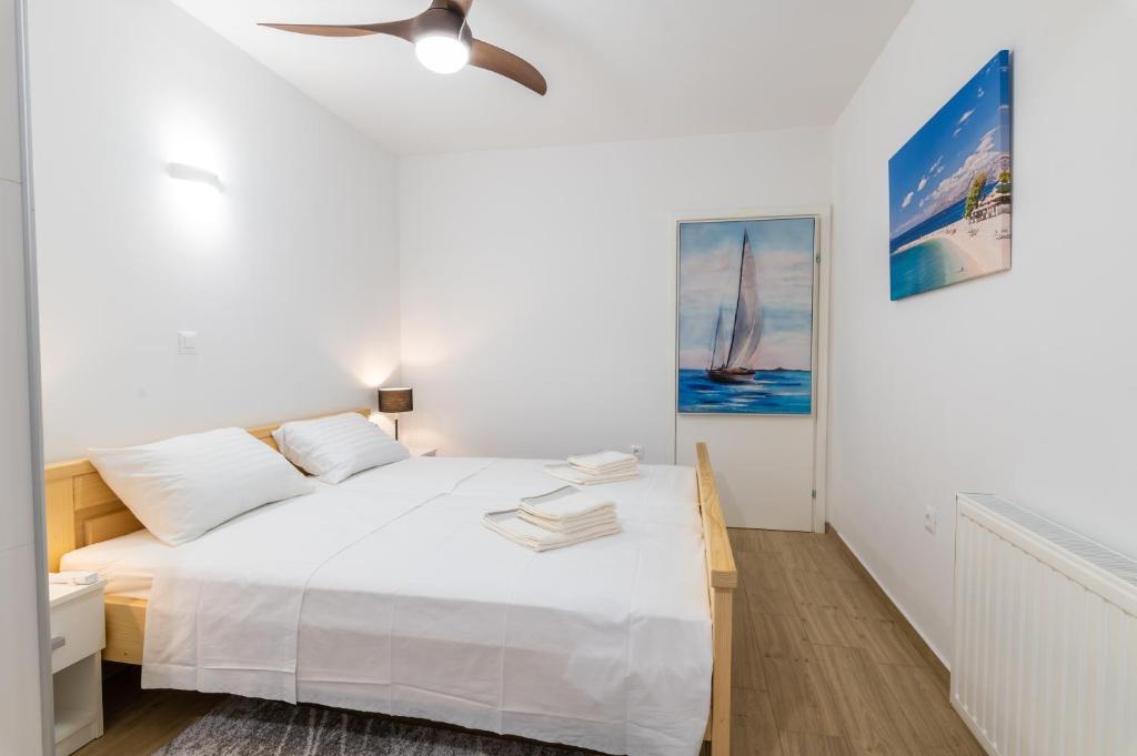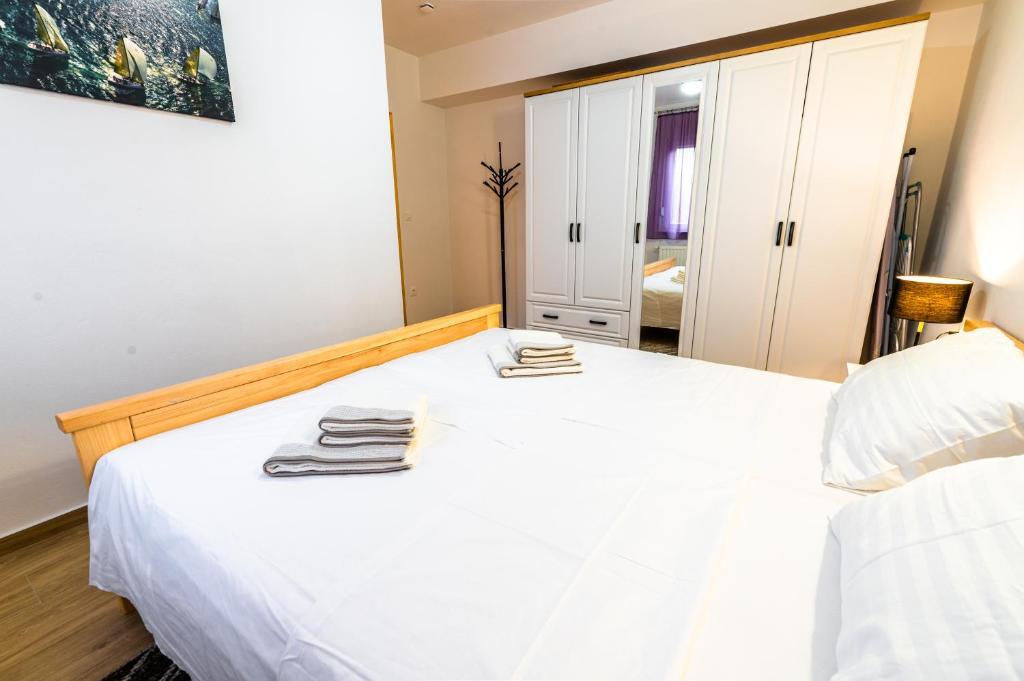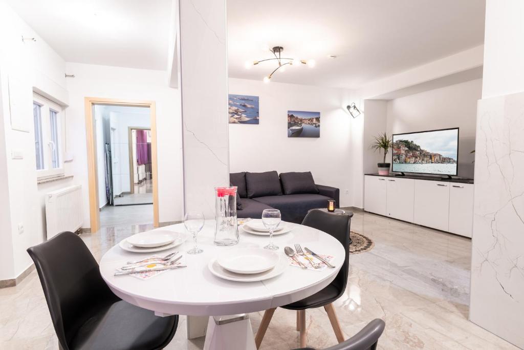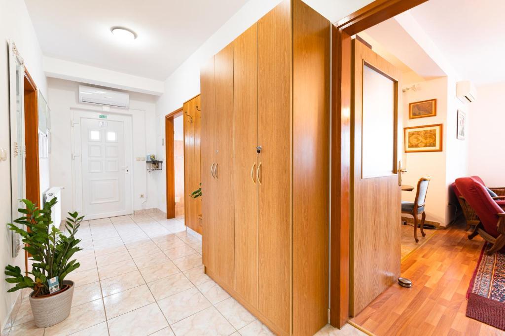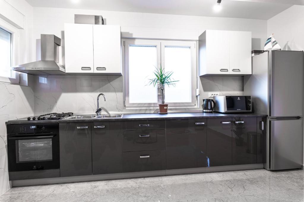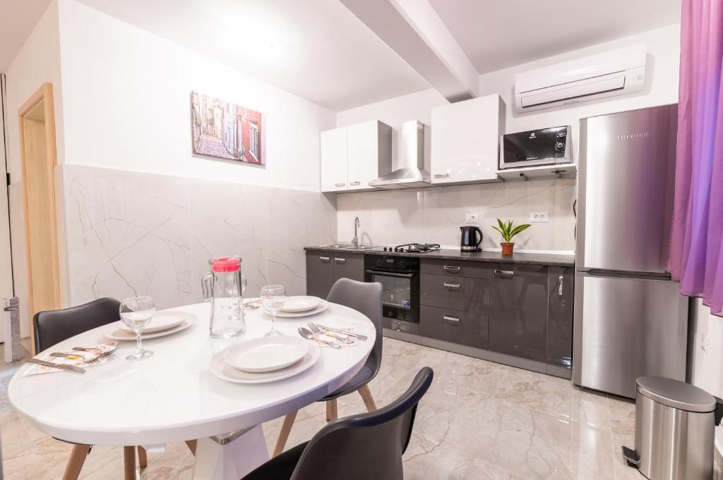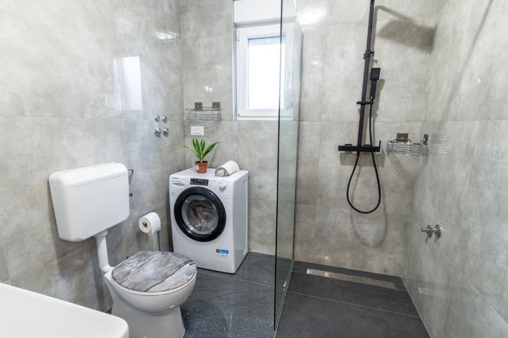 Nabízíme vám tři 4hvězdičkové apartmány, skvěle vybavené a nově zařízené apartmány, v klidné rodinné čtvrti Šibeniku, ideální pro rodiny a hosty, kteří chtějí klidné, bezpečné prostředí, kde mohou relaxovat s vědomím, že oni a jejich majetek jsou v bezpečí. Na místě Vám poskytujeme naše bezplatné soukromé parkoviště, které je hned za budovou, skryté před pohledem do ulice a na které je vidět z bytu. Byt se nachází 20 minut chůze od Starého Města Šibenik a v bezprostřední blízkosti všech městských zařízení. K moři je to 500 metrů a na nejbližší pláže dojedete autem za pouhých 5 minut. Každý apartmán je plně zařízen a vybaven veškerým zařízením a každý má přístup na terasu, balkon a venkovní pec na grilování a pečení.