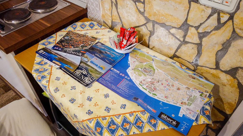 Apartmány Brigita jsou v rodinném domě v centru města Šibeniku, v blízkosti trhu, autobusové nádraží a historické části města, pouhých dvacet minut chůze od městské pláže. Nabízíme ubytování v pokoji pro první dvě osoby v apartmánu pro dvě druhé a třetí sady pro dvě osoby s možností dvou přistýlek. Všechny jednotky jsou moderně zařízené standardní vybavení, které zahrnuje televizi, klimatizaci, wi-fi připojení k internetu, plně vybavený kuchyňský kout, sprcha a WC. V okolí 100 až 200 m se nachází pekařství, město trhu, obchodní dům City Life, bankomaty, pošta, lékař, lékárna, směnárna, obchody, restaurace, kavárna, pizzerie, autobusové a železniční stanice. Což umožňuje hostům bezplatné parkování na veřejném parkovišti v blízkosti bytu. Děti jsou vítány. Pro děti do dvou let, máme cestovní postýlku.