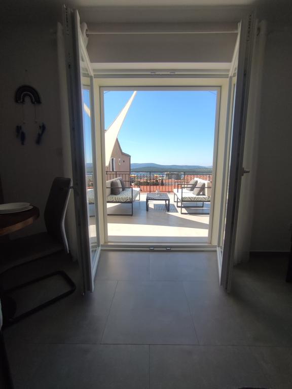Byt v klidné části města Šibenik Byt se nachází 10 minut chůze od Starého Města Šibenik a v bezprostřední blízkosti veškeré městské občanské vybavenosti. K moři je to 500 metrů a na nejbližší pláže dojedete autem za pouhých 5 minut. Byt je plně zařízený a vybavený veškerým zařízením a má přístup na terasu s krásným výhledem na záliv Šibenik a město.