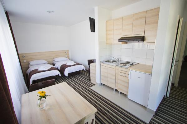 Pobytová taxa není v ceně.Všechny pokoje jsou vybaveny TV a kabelovou TV, bezplatné Wi-Fi připojení na internet a vlastní klimatizací. Parkování je možné před budovou a je zahrnuta v ceně. Cena zahrnuje jednou týdně úklid pokoje. Ručníky jsou také k dispozici.