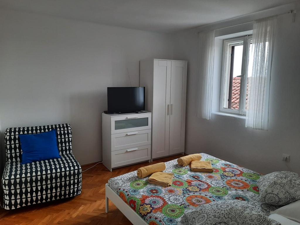 Okouzlující nově zrekonstruovaný byt v klidné ulici starého města Šibenik, nedaleko pevnosti sv. Michala. Občanská vybavenost starého města (památky, restaurace, obchody) je vzdálena 5 minut chůze. Pevnost Mihovil je vzdálená 2 minuty chůze (150 m) a 3 minuty chůze (250 m) je katedrála v Šibeniku. Městská pláž Banj je vzdálená 13 minut chůze (1 km). Autobusové nádraží je vzdáleno 8 minut chůze (700 m).