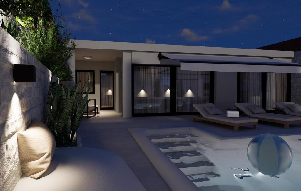 Rekreační dům s bazénem – první řada u moře, Mandalina, Šibenik. Tento moderní rekreační dům se nachází v první řadě u moře na exkluzivním poloostrově Mandalina a nabízí perfektní kombinaci soukromí, pohodlí a středomořské atmosféry. S otevřeným výhledem na moře a město Šibenik je ideální volbou pro hosty, kteří hledají klidnou, ale zároveň prestižní lokalitu v dosahu veškeré občanské vybavenosti. O NEMOVITOSTI Dům se pronajímá jako celek a skládá se z: - prostorného a světlého obývacího pokoje s přístupem na dvůr - plně vybavené kuchyně a jídelny - 2 ložnic, každá s vlastní koupelnou a klimatizací - soukromého dvora s bazénem - garáže + další parkovací místo VENKOVNÍ PROSTOR - Soukromý bazén - Terasa na opalování s lehátky + odpočinková zóna - Výhled na moře a město - První řada u moře LOKALITA – POLOSTROV MANDALINA - Mandalina je jednou z nejatraktivnějších a nejklidnějších oblastí Šibeniku - bezprostřední blízkost moře a promenády - blízkost přístavu D-Marina Mandalina (námořní atrakce, restaurace) - 5 minut jízdy do starého města