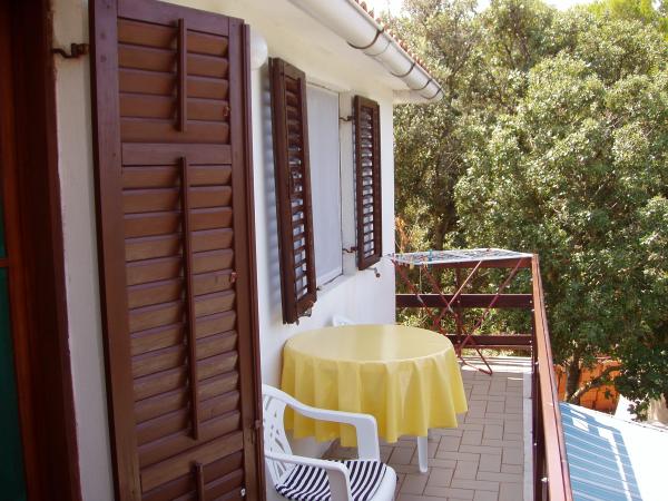 Byt o rozloze 60m2, v patře rodinného domu (samostatný vchod na patře) se dvěma ložnicemi (jedna s manželskou postelí a druhá se dvěma samostatnými lůžky), kuchyň, koupelna, balkon, satelitní TV, klimatizace. Před vchodem je velká zahrada (stůl, židle, deštník a gril). V okolí se nachází 40 kroků do klidné zátoky Pocukmarak. Ideální pro skutečnou dovolenou, dostačující plavky a po dobu jedné minuty jste z apartmánu v moři.