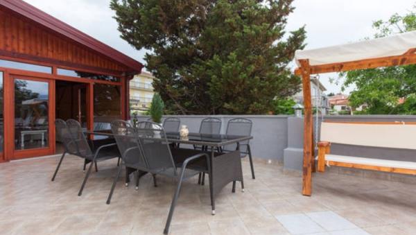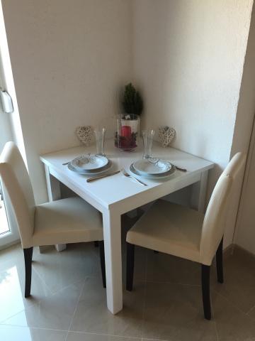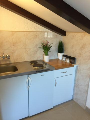 Plně zařízené Nově zrekonstruované apartmány se nacházejí v jedné budově, kde jste a pekárna, takže ráno máte čerstvý chléb a pečivo, pláž je pouhých 300 metrů. Ostatní zařízení v apartmánech jsou žehlička, žehlící prkno, vysoušeč vlasů, klimatizace, TV-SAT. V přední části bytů má parkovací místo. V apartmánech zajišťujeme příslušenství, které byste mohli potřebovat během svého pobytu (toaletní papír, šampon, vysoušeč vlasů a ručníky) V kuchyni je základní vybavení pro vaření, jako jsou hrnce, pánve, příbory, stejně jako některé základních složek jsou k dispozici (sůl, pepř, cukr, olej, ocet). Všechny apartmány mají připojení k internetu a klimatizaci a LCD TV.