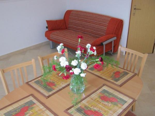 Typ Studio 4 2, kategorie 3, podkroví 55 m2, obývák a kuchyň jsou v jedné místnosti, velikost (obýváku, jídelny nebo kuchyně) 25 m2, balkon; 8 m2, terasa; 50 m2, topení (všechny místnosti), klimatizace (všechny místnosti), dovoleno kouření v apartmá, možnost pobytu domácích zvířat (předem), vyhlídka na: moře a zelenou plochu (pokoj), moře (obývák)
