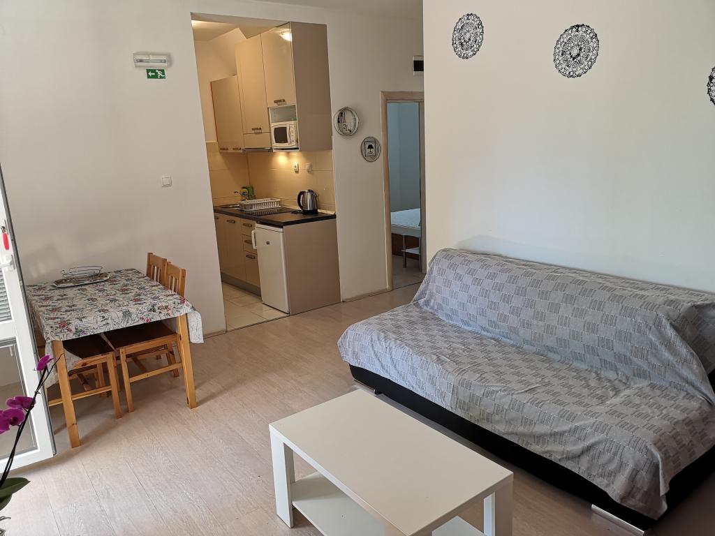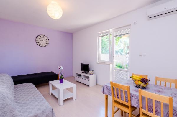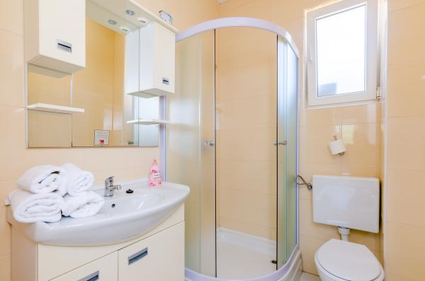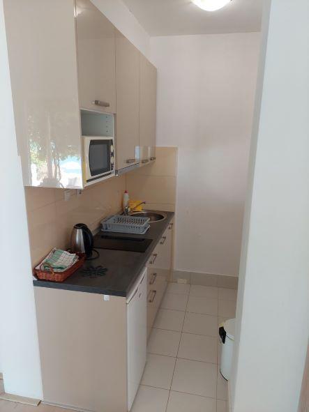 Plně vybavené apartmány dle nových kategorizačních podmínek. Nachází se v mírné a klidné zátoce s písečnou pláží. Objekt se nachází přímo u pláže, cca 5 metrů. Zařízení je novostavba postavená v roce 2011. Do centra města se dostanete autem nebo 30 minut chůze po silnici s výhledem na moře.