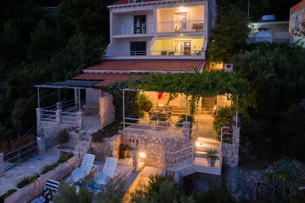 Dva moderně vybavené apartmány v nově postavené rodinný dům v první řadě k moři s vlastní pláží, s venkovním sprchovým koutem a panoramatické terasy s výhledem na moře a tradiční kamenné grilování bude vaší volbou pro ideální dovolenou! Apartmány Ratac Lobrović se nacházejí v romantickém místě první řady na moři s vlastní soukromou pláží v oáze klidu a ticha v malé vesničce Ratac u Slano (asi 5 km na západ) a celosvětově populární historické a kulturní město Dubrovník (asi 20 km východně ) a gastronomické centrum Dubrovníku Rivijera Ston (cca 20 km západně). Dům je rozdělen na tři patra a nabízí dva apartmány pro samostatné vchody. Každý apartmán je plně klimatizovaný a má jednu ložnici s manželskou postelí a velkou šatnu, prostorný a pohodlný obývací pokoj s pohovkou, kterou lze přeměnit na pohodlné lůžko pro dvě osoby, velkou a plně vybavenou kuchyň a jídelní kout, moderní koupelnu se sprchou a toaletou stroj a venkovní panoramatická terasa / balkon.