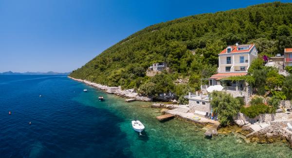 Pobytová taxa je v ceně.Oba byty mají právo používat společnou terasu s deštníky a lehátky a extra velké tradiční kamenné grilování. Zde můžete strávit grilové večery jen pár kroků od pláže. Můžete sestoupit z terasy kamenného schodiště přímo do křišťálově čistého moře. Spolehlivý přístup k WLAN je nabízen v celém objektu zdarma. K dispozici je také bezplatné parkoviště pro dopravní prostředky. Žijeme ve druhém patře domu a my jsme vždy k vám. Na vyžádání a za příplatek zajistíme transfery z / na letiště Dubrovník nebo na požádání můžeme projít výlet lodí do Sipanu, Lopudu, Jaklanu a dalších Elafitů nebo na ostrov Mljet. Podívejte se na obrázky a představte si, jak může vaše dovolená vypadat ...