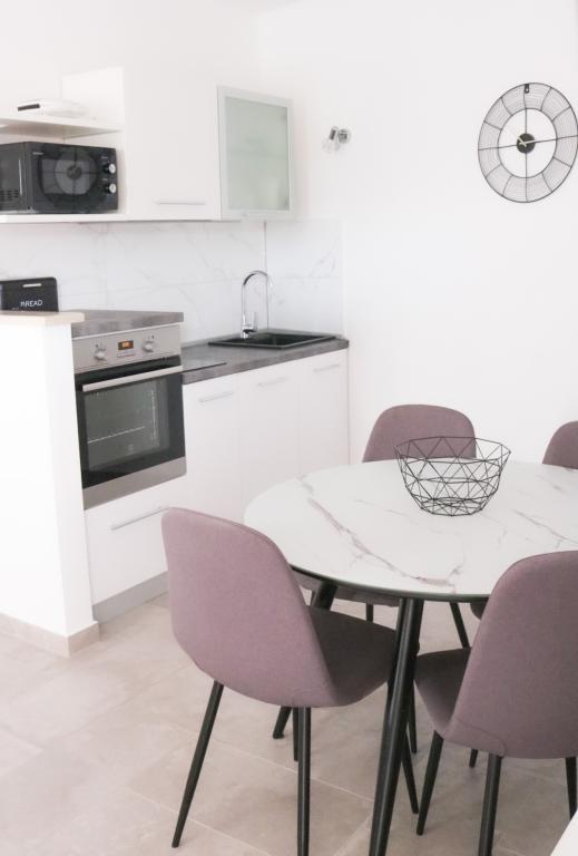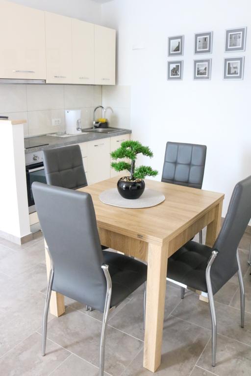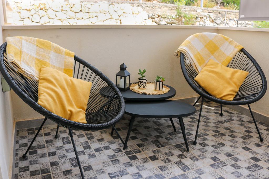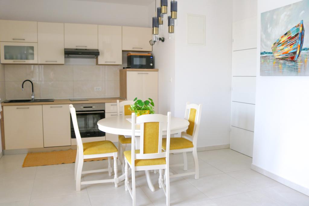 Plně vybavené apartmány dle nových podmínek kategorizace.Apartmány jsou moderně zařízené. Nachází se v klidné zátoce. Zařízení se nachází přímo u moře. Budova byla nově postavena v roce 2022. Do centra, které je vzdálené pouhé 4 kilometry, se dostanete autem, na kole, po dálnici nebo přes město Slađenovići.