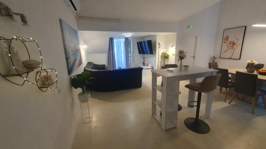 Velký, pohodlný, dobře vybavený apartmán. V blízkosti pláže a obchodů. Spousta barů v okolí. Vodní taxi do Trogiru a Splitu na prohlídku památek.