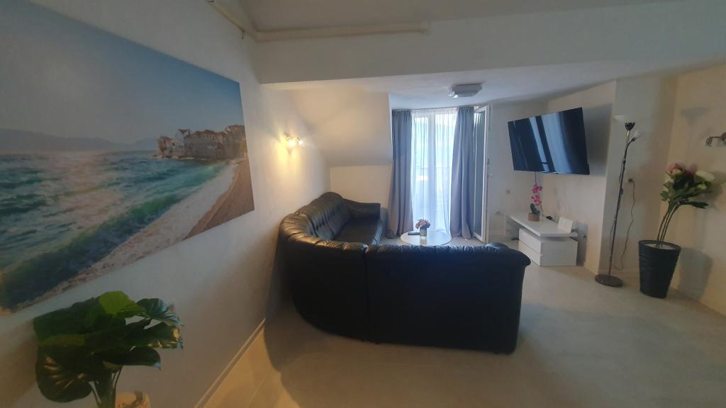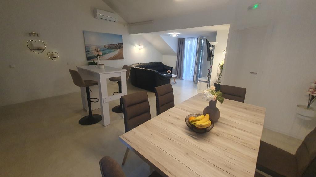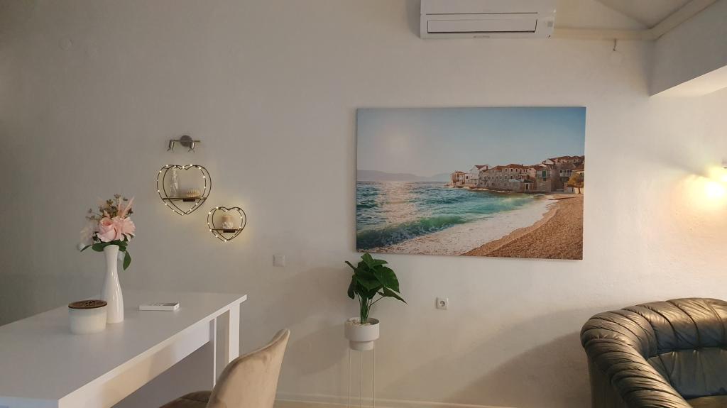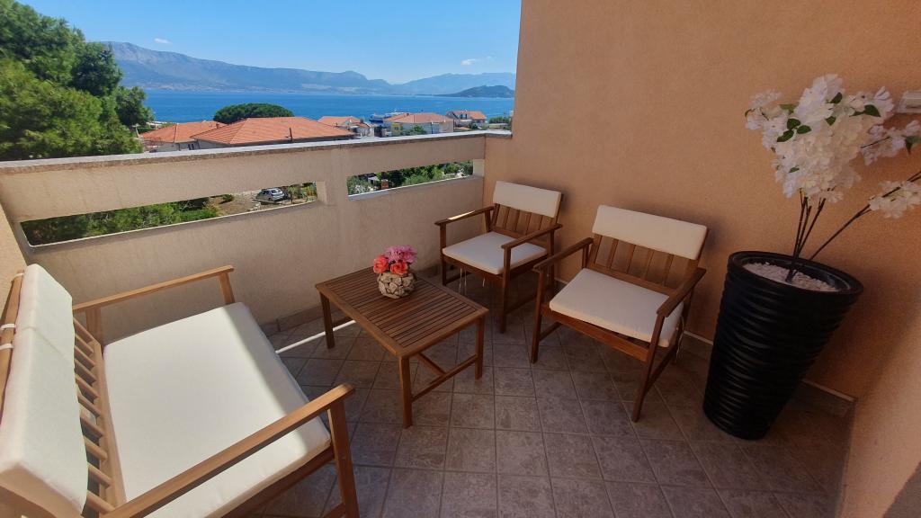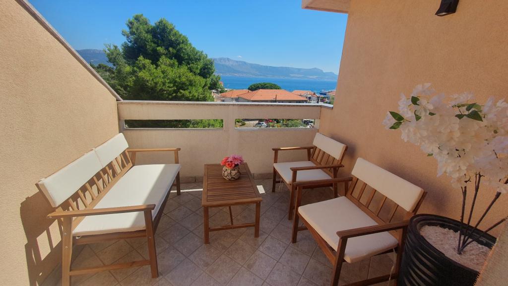 Plně a moderně vybavený apartmán v samém centru Slatiny na ostrově Čiovo. Čiovo je ostrov spojený dvěma mosty a má výborné spojení s okolními městy. Slatine je jen 5 km od města Trogir a 30 km od města ze Splitu. Ze Slatiny jezdí také lodní linka do Splitu, vzdáleného pouhých 30 minut. Apartmán se nachází 200 m od moře a 5 minut chůze od nejbližší restaurace. Komfortní apartmán zařízený v dalmatském stylu se nachází v samotné centrum Slatiny na ostrově Čiovo. Ze 3 balkonů je krásný výhled na moře a na záliv Lastelan a vše, co potřebujete během dovolené (obchody, restaurace atd.), je maximálně 5 minut chůze od apartmánu.