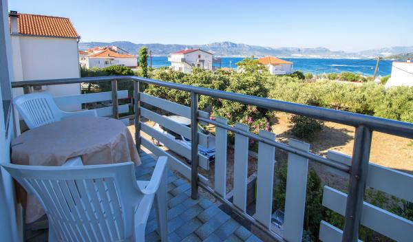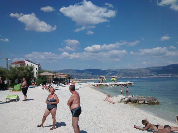 Vynikající byt se vším potřebným pro rodinnou dovolenou s balkonem s výhledem na moře. Perfektní pláž 2 minuty chůze s mnoha aktivitami. V blízkosti velkých měst, vyhlídkové jízdy - Split a Trogir. A velmi příjemný hostitel, který se stará o své hosty. Velmi doporučuji.