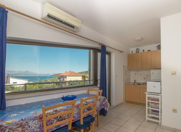 Vřele doporučuji. Přátelská hostitelka, byt vybavený všemi potřebnými věcmi, klid a skvělý výhled z balkonu. V blízkosti pláže a autobusem do Trogiru. Už jsem byl dvakrát a asi to ještě není konec.. protože to stojí za to.