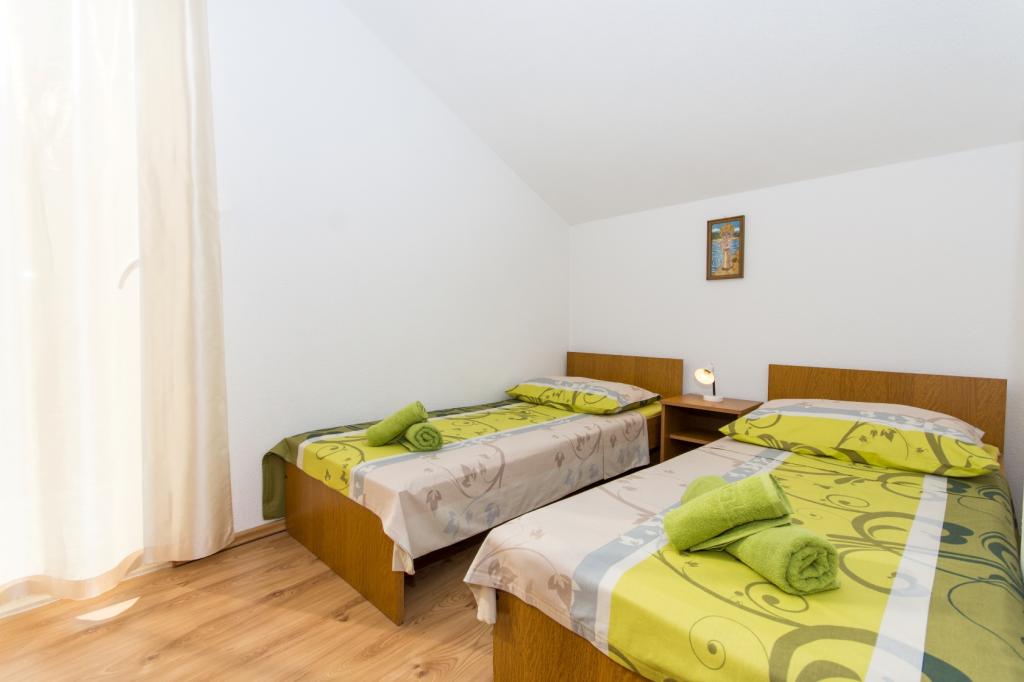 Apartmány Anka se nacházejí ve Slatine na ostrově Čiovo, 5 km od Trogiru. Se Splitem jsou spojeny lodní linkou. Apartmány se nacházejí v prvním a druhém patře rodinného domu. Apartmán pro 6 osob je Nachází se v prvním patře a skládá se ze 3 pokojů, obývacího pokoje, kuchyně a koupelny.Ve druhém patře jsou dva apartmány každý se dvěma pokoji, kuchyní a koupelnou.Všechny apartmány mají terasy s nádherným výhledem na moře. Všechny apartmány mají samostatný vchod.Dům je obklopen středomořskými rostlinami a zahradou pro děti.Hostům je zajištěno parkování a využití venkovního grilu.