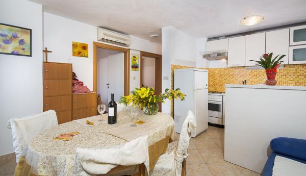 Byt je kompletně zrekonstruovaný a plně vybavený, je nejprve do moře, s krásným výhledem na Více. Dvě ložnice, koupelna, kuchyň, jídelna a obývací boravkom.Osiguran vám parkování. Na pláži je v přední části domu, která je upravená pro nejmenší djecu.Do centra patnáct minut tam, kde jsou kavárny, restaurace, obchody a další sadržaji.Ako si raději na procházku u moře, máte obrovskou stopu lesem.