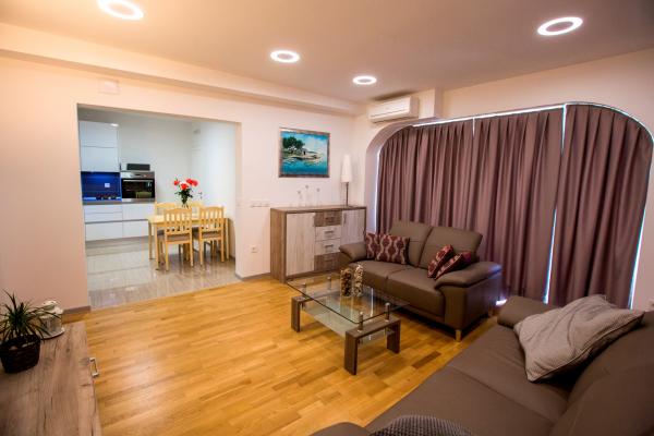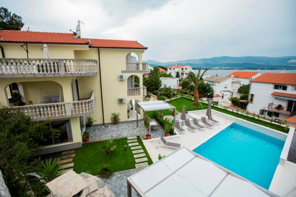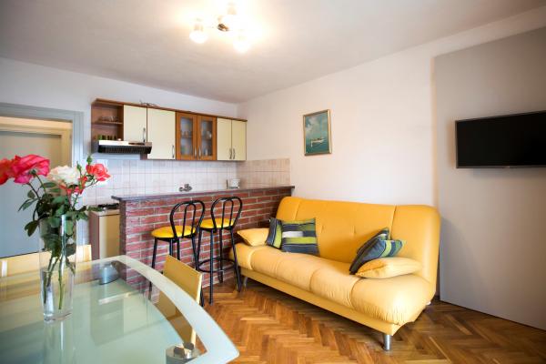 Pobytová taxa je v ceně.Byt a budova jsou moderní, kvalitní, dobře udržované a především čisté. Byt je velmi pohodlný a prostorný, ideální pro rodinu. Výhled z balkonu na moře je fantastický. Bazén v upravené zahradě je velmi čistý a zve vás k relaxaci. Majitel je nesmírně nápomocný, nemůžeme mu za tak příjemný pobyt dost poděkovat. Skvělá poloha pro objevování centrálního dalmatského pobřeží.