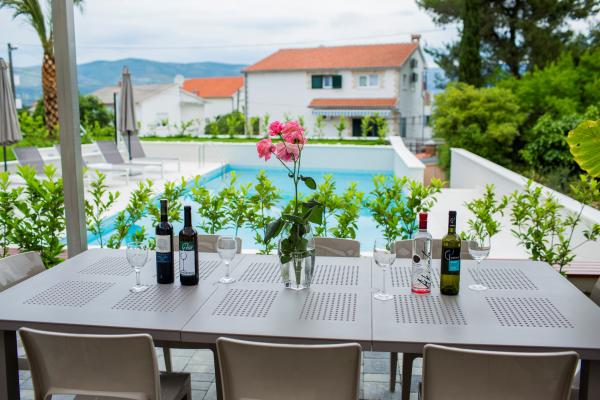 Dům se nachází 90 metrů od moře, v klidné části Slatina. K dispozici je bazén, gril pro všechny hosty, internet zdarma a parkovacími místy. Každý apartmán má výhled na moře a dvě terasy, kde si můžete odpočinout a užít si dovolenou. Všechny apartmány jsou klimatizované a dobře vybavené.