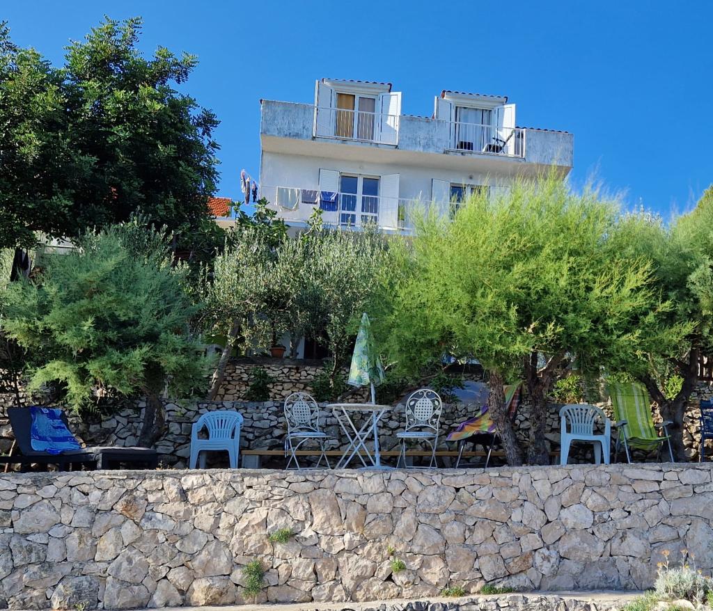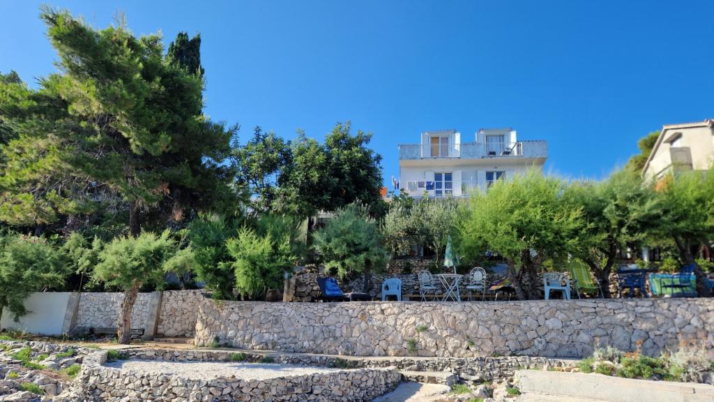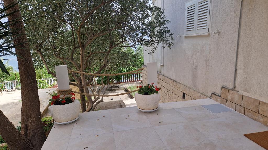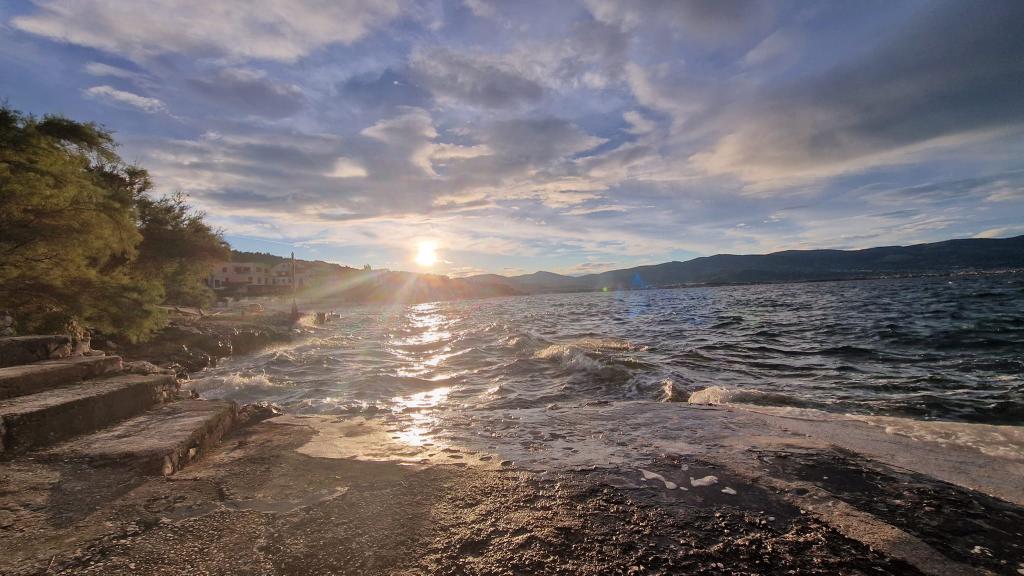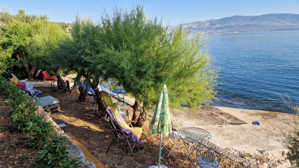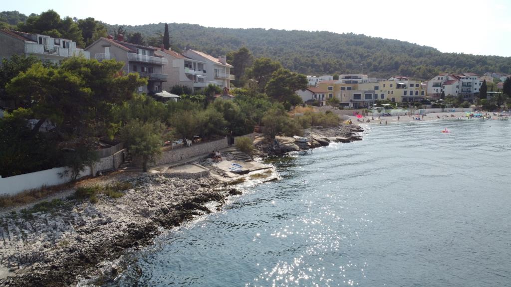 Apartmány se nacházejí v klidném prostředí v první řadě k moři. Parkování je zajištěno. Jsou deset minut chůze od města Slatina, jak daleko to trvá, než se dostanete na trh. Do Trogiru a Splitu se také dostanete lodí za půl hodiny. Letiště je vzdáleno půl hodiny jízdy. Ceny apartmánů zahrnují pobytovou taxu, parkování zdarma, neomezené používání klimatizace, úklidové služby. Minimální délka pobytu je pět nocí. Přijďte si užít moře a slunce...