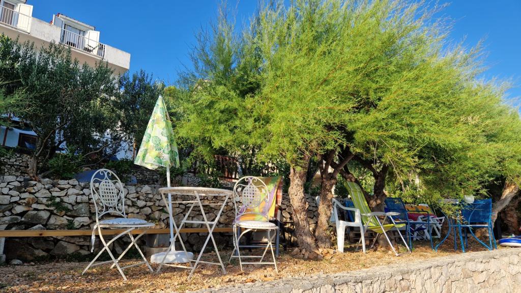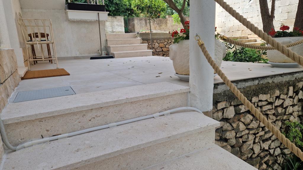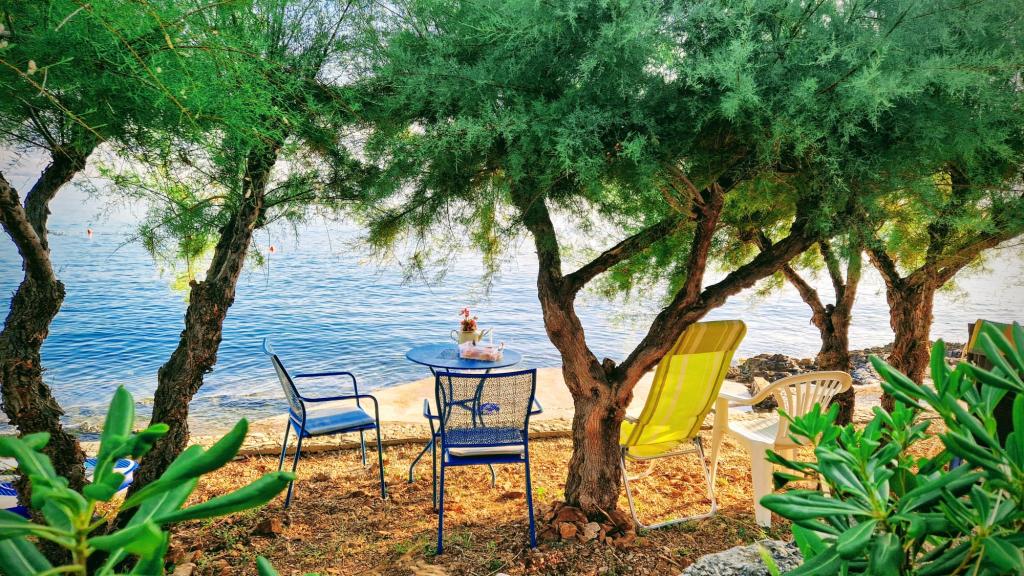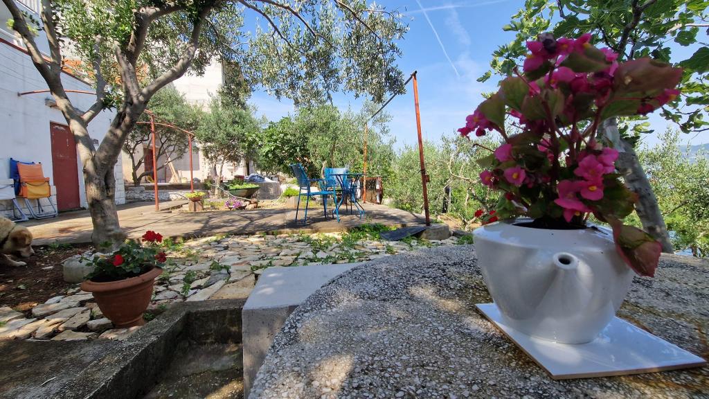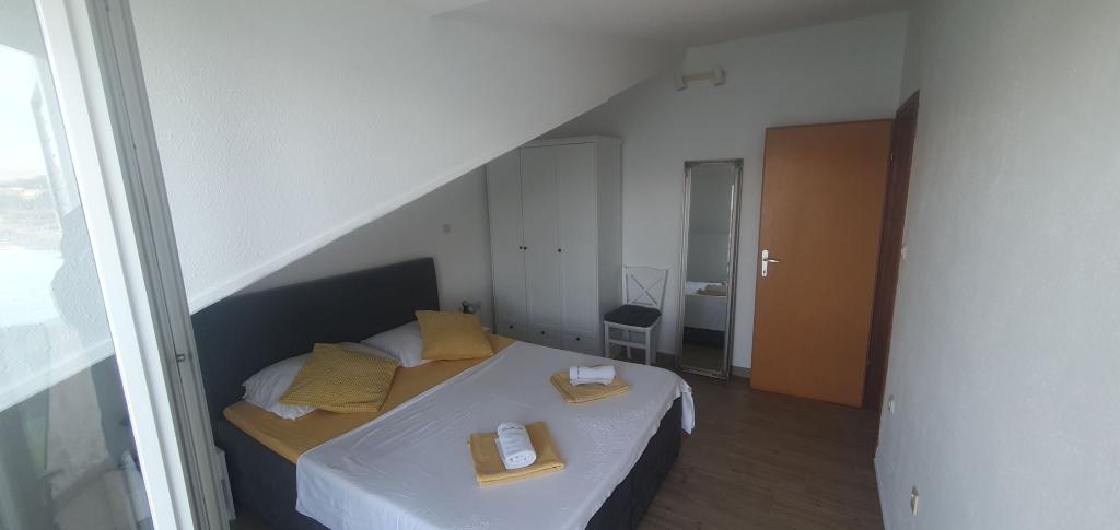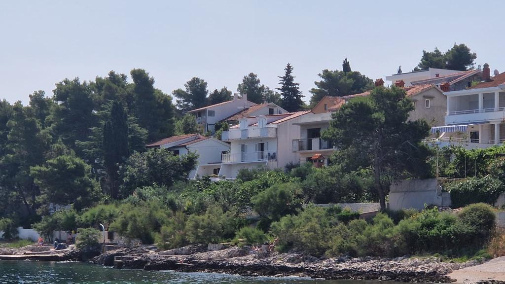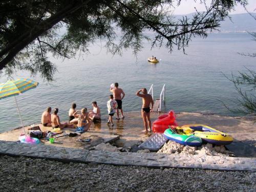 Apartmány se nacházejí v klidném prostředí v první řadě k moři. Parkování je zajištěno. Jsou deset minut chůze od města Slatina, jak daleko to trvá, než se dostanete na trh. Do Trogiru a Splitu se také dostanete lodí za půl hodiny. Letiště je vzdáleno půl hodiny jízdy. Ceny apartmánů zahrnují pobytovou taxu, parkování zdarma, neomezené používání klimatizace, úklidové služby. Minimální délka pobytu je pět nocí. Přijďte si užít moře a slunce...
