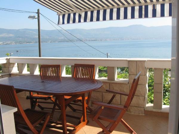 Byt je v souladu s popisem a fotografiemi. Dobře vybavený. 2 ložnice, pokoj s jídelnou s 2 rozkládacími pohovkami, kuchyň (je zde vše) a koupelna. Krásný výhled z pokoje a balkonu. Na balkóně je stůl se židlemi, lehátky a sušičkou. Velmi blízko pláže, čistá, tyrkysová voda. Na pláži bar, sprchový kout. Skalnatá pláž, štěrková pláž a betonová místa. Velmi blízko Trogir a Split - vodní taxi nebo veřejná doprava. Do supermarketu asi 300 m dává chléb do sousedního domu domácí pekárnu - každý den kolem 9:00. Majitel se stará o hosty, pěkný, s úsměvem. Doporučujeme to!