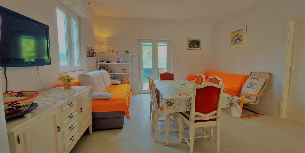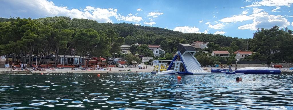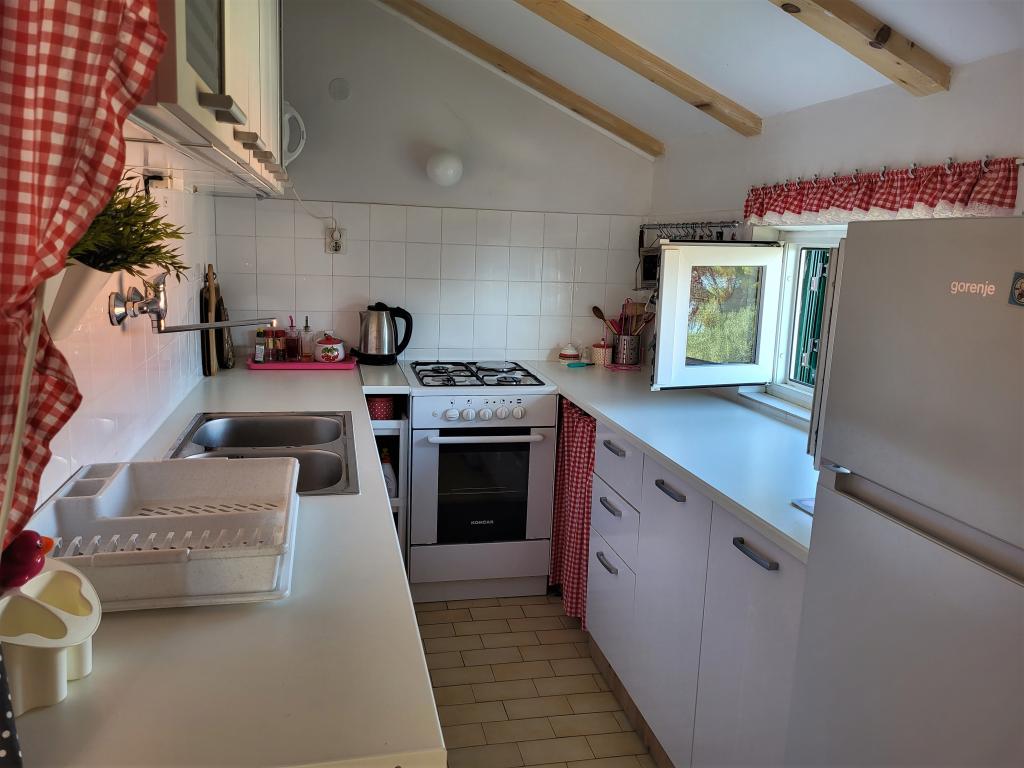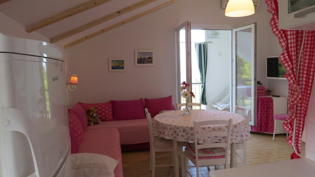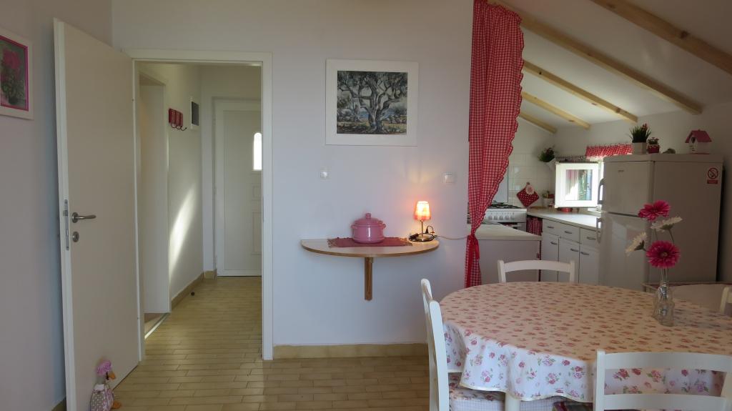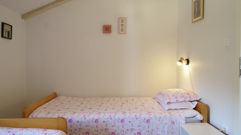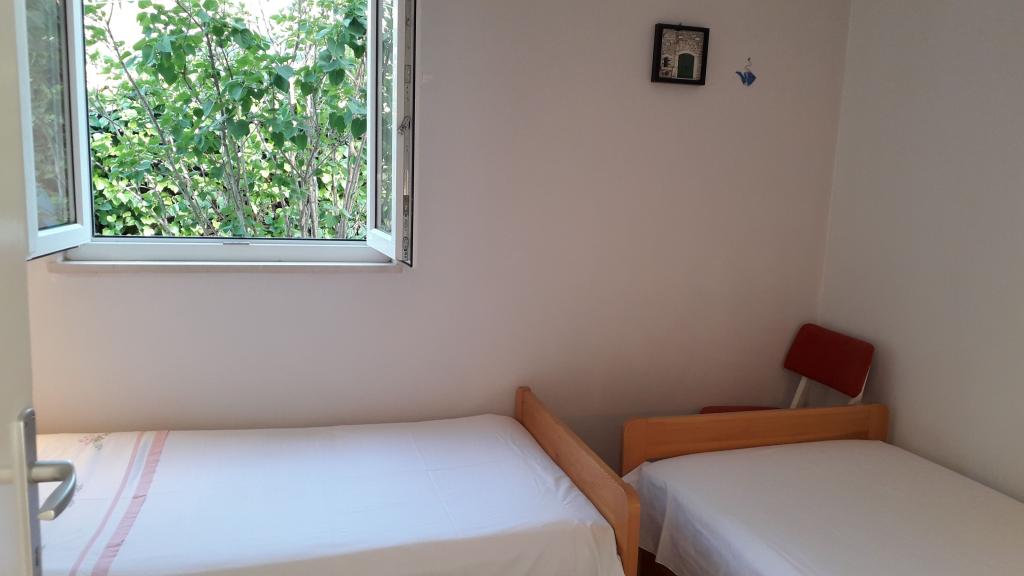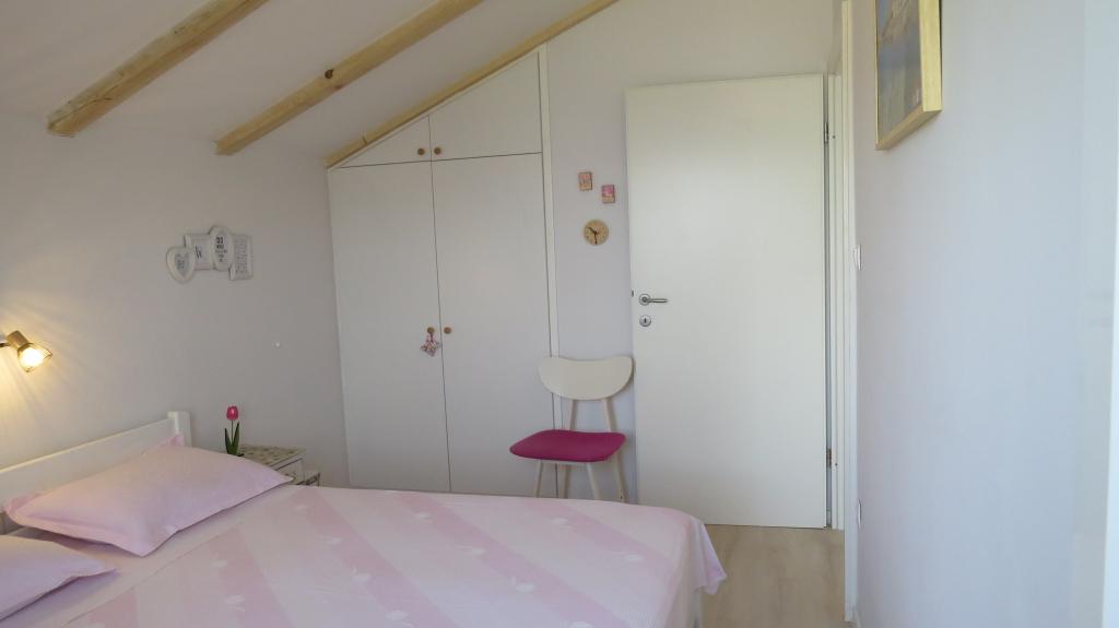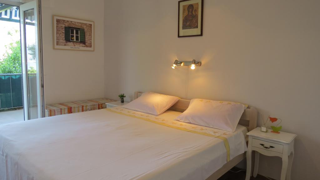Dům na Čiovo má dva apartmány, které se nacházejí v těsné blízkosti moře, plně vybavené a moderní, v klidné části obce s výhledem na záliv Kaštela a Split. Ideální místo pro klid a relaxaci. Každý apartmán má 2 ložnice, obývací pokoj, kuchyň, koupelna. V přízemí bytu je velký a zadní terasu a byt v podkroví malou terasu. Parkovací místa pro 4 auta ve dvoře. Dům se nachází 1 km od Slatina, a 5 km od Trogiru. Do Trogiru jezdí pravidelné autobusové a trajektem od Slatina. Na pláži před domem se nachází oblázková pláž a nabízí zařízení, jako jsou restaurace a zábavní hry. Split je cca 30 km, na letiště cca 8 km a národní park Krka 50 km.