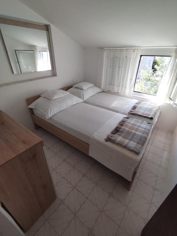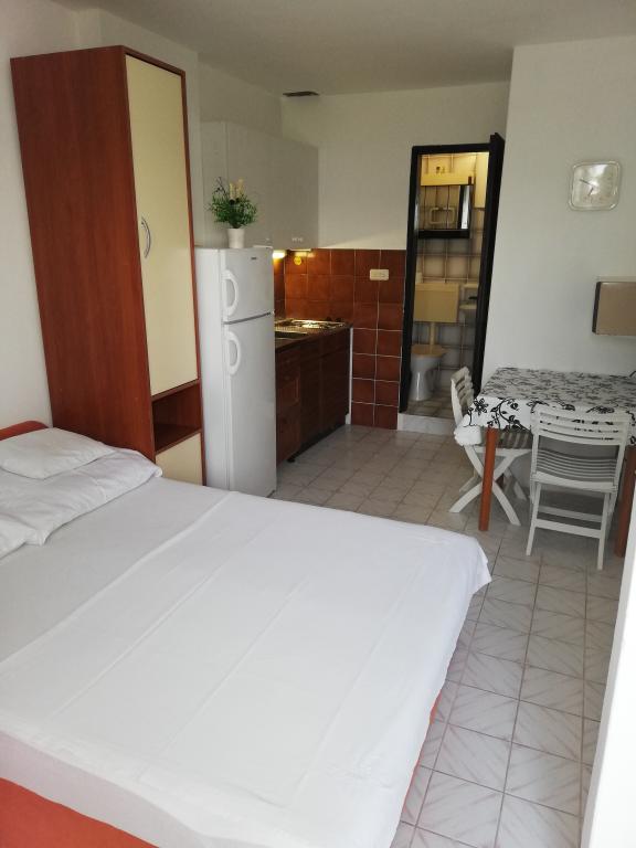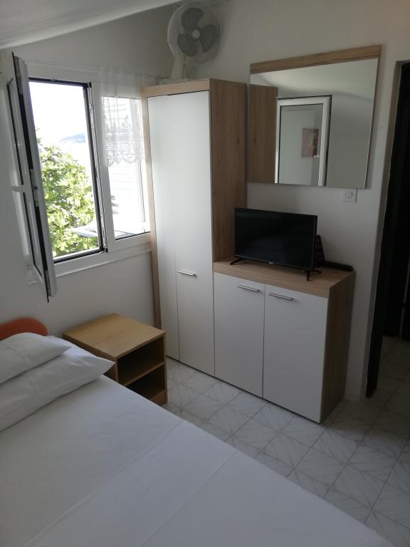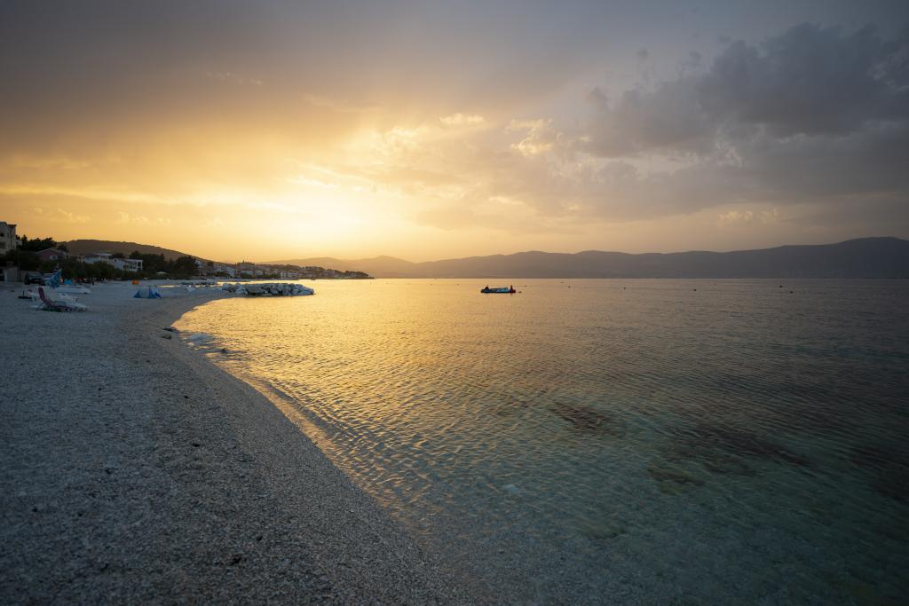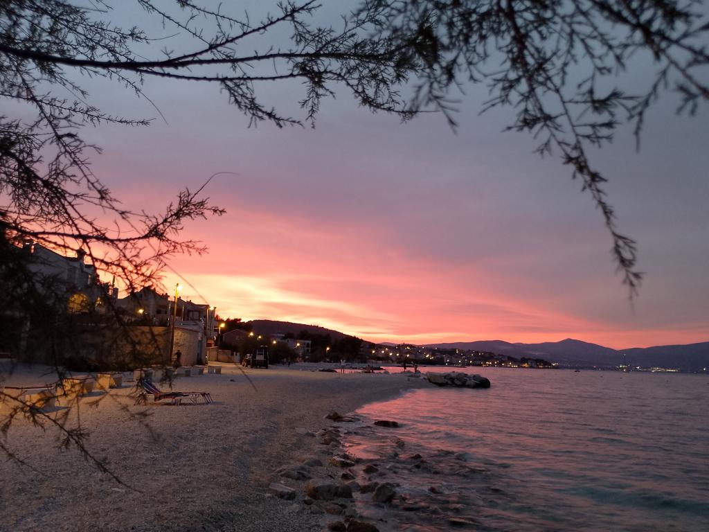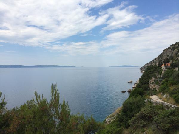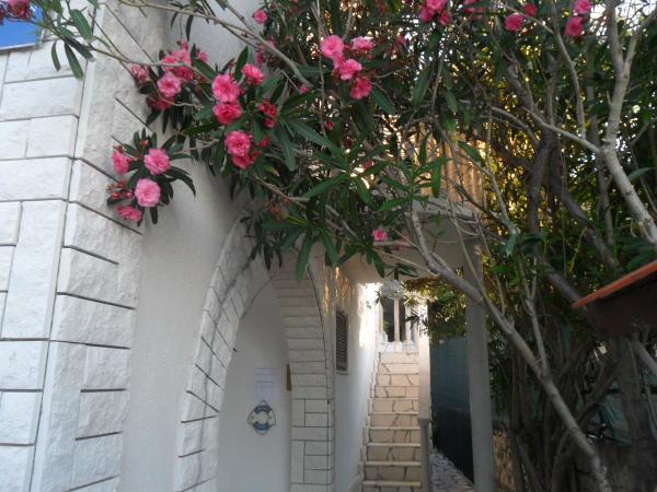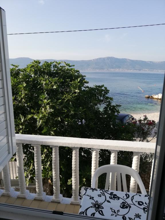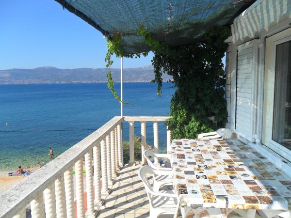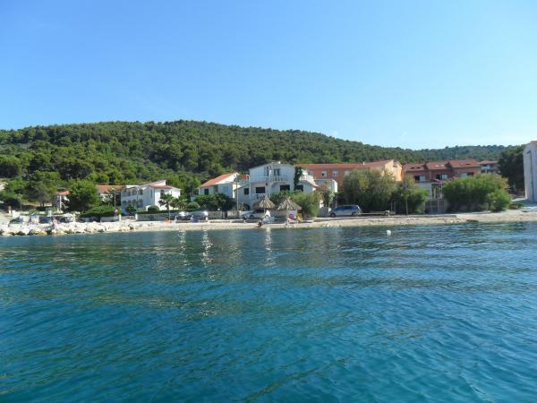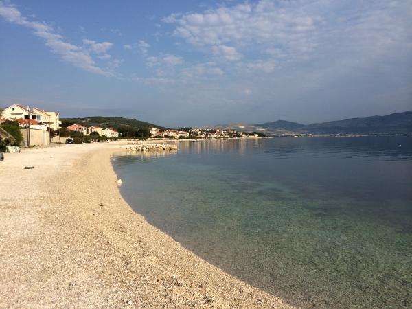 Apartmány se nacházejí velmi blízko pláže s krásným výhledem na moře. Velmi čisté, vybavené všemi potřebnými věcmi. Majitel je velmi milý, ochotný a stará se o své hosty. Udržovaná pláž s jemnými oblázky a venkovní sprchou. Umístěte v klidné oblasti. Je však blízko barů, restaurací a vodního hřiště. V blízkosti výletů do Trogiru a Splitu. Dostanete se tam veřejnou dopravou a trajektem.