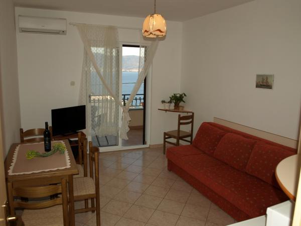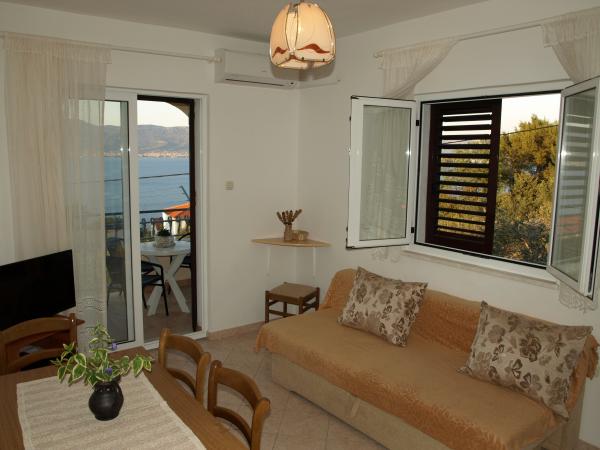 místo objektu,popisy místa a apartmánů a fotky souhlasí se skutečností. úžasné místo pro klidnou odpočinkovou dovolenou. Majitelé velmi příjemní, v apartmánech je čisto, vybavení odpovídající popisu. Určitě tento objekt doporučuji a doporučula bych ho jak známým, tak příbuzným Velká výhoda, že jak apartmán, tak pláž je mimo dopravní ruch a mimo silnici. Pláž je krásná, menší, oblázková, moře křišťálově čisté. Kdo má rád trochu rušnější dovolenou, vše dostupné v okolí. Do Trogiru dobrá dostupnost jak místním autobusem, tak lodí, hezký výlet. Lodí i dobrá dostupnost do Splitu.