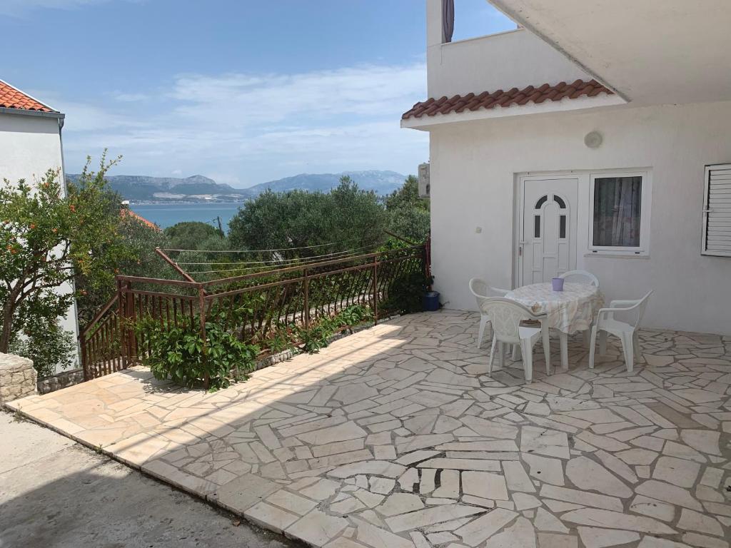 Ubytovací zařízení se nachází v krásném, klidném a atraktivním městečku Slatine, které je 6 km od města Trogir, které je na seznamu UNESCO, 30 km od Splitu, který je na seznamu UNESCO. Objekt je daleko od oblázkové pláže a moře pouze 50 m. Objekt má výhled na moře. Ubytování je obklopeno klidem, tichem a dobře míněnou čtvrtí. Objekt má vlastní oplocené parkoviště, které je zdarma. Ubytovací zařízení se skládá ze dvou ubytovacích jednotek (Apartmán A4 + 2 a Apartmán A4.). Každá ubytovací jednotka má jedno bezplatné parkovací místo ve dvoře ubytovacího zařízení. Apartmán A4 + 2: Plocha apartmánu je 65 m2, skládá se z velkého obývacího pokoje a kuchyně, 2 velkých ložnic s manželskou postelí, velké toalety a dvou velkých teras, na jedné terase je krb na grilování. V ubytovací jednotce se může ubytovat maximálně 6 osob (4 dospělí + 2 dospělí na skládací pohovce v obývacím pokoji.) V ubytovací jednotce je rozkládací dětská postýlka. Apartmán A4: Plocha této ubytovací jednotky je 45 m2. Skládá se z obývacího pokoje a kuchyně. Jeden pokoj s manželskou postelí a jeden pokoj se 2 lůžky a jedním malým WC. Ubytovací jednotka má velkou terasu s částečným výhledem na moře. Na terase je ohniště pro grilování. V ubytovací jednotce se mohou ubytovat maximálně 4 osoby. Ubytovací jednotka nabízí dětskou postýlku Památky Slatiny: Nejznámější dominantou Slatiny je svatyně Panny Marie Prizidnické a kostel Nanebevzetí Panny Marie. Město Trogir: Trogir je jedno z řady měst v Dalmácii, která jsou pod ochranou UNESCO. Trogir založili staří Řekové a během staletí se stal nejzachovalejším románsko-gotickým městem v Evropě. Ve skutečnosti skutečné hradní muzeum. Kromě zachovaných zdí, věží a městských bran zde můžete vidět nádherné městské paláce, četné kostely a kláštery a také katedrálu s jedinečným portálem. Z