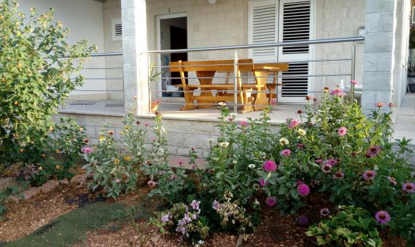 Apartmány se nacházejí v klidné části Slatina, která se nachází přímo u moře, 10 metrů chůze od pláže. Před apartmány je oblázková pláž, která je ideální pro koupání. Apartmány jsou pohodlné, vybavené televizí, bezdrátovým připojením k internetu a klimatizaci. Na zahradě je gril, který je hostům k dispozici. Pro všechny hosty je k dispozici parkoviště. Restaurace, bary se nachází 4 km od bytu.