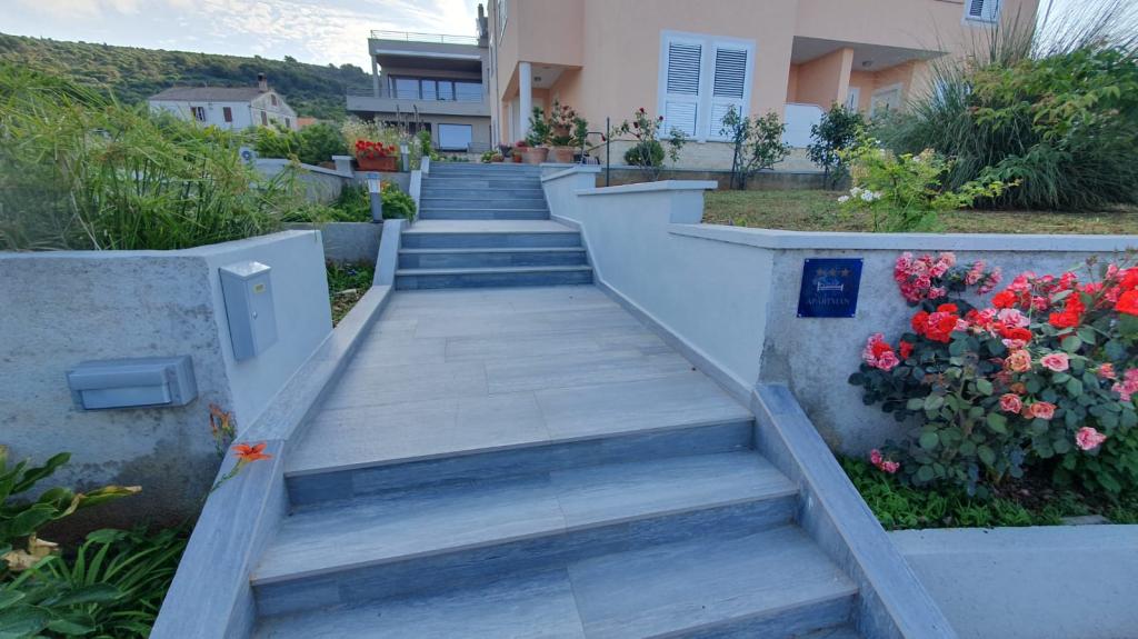 Zbrusu nové, plně vybavené apartmány v klidné a malebné vesničce Soline v severozápadní části ostrova Dugi Otok. Apartmány se nacházejí v první řadě u moře a jsou vzdálené pouhých 30 metrů od nejbližší oblázkové pláže v samotné vesnici a 10 minut chůze od jedné z nejkrásnějších písečných pláží na Jadranu, zátoky Sakarun.