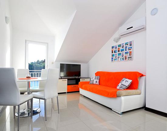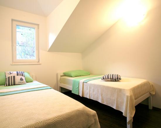 Nově zrekonstruovaný apartmán Ogi se nachází v nejvyšším patře rodinného domu přímo u moře v klidné zátoce Gornje Krušice s krásným výhledem na moře a zelené kopce na druhé straně zálivu. Hosté najdou zde vše, co potřebujete pro zábavu u moře a objevování sousedních zátok. Tento slunný apartmán má otevřený obývací pokoj s rozkládací pohovkou, plochou TV, jídelní stůl a krásnou plně vybavenou kuchyň. Z obývacího pokoje se dostanete na jeden ze dvou balkonů, kde budete mít krásné prostředí. Apartmán Ogi má dvě ložnice, z nichž jedna je s manželskou postelí a druhá se dvěma samostatnými lůžky. Moderně zařízená koupelna má sprchu a WC. Na zahradě najdete hrozny, fíky, citróny ... K dispozici je terasa před apartmánem a skryté místo pod olivovníky, stejně jako venkovní gril, kde můžete vařit ryby, maso nebo čerstvou zeleninu ... lahůdky léta. V této krásné zátoce s čistými, čistými vodami se můžete těšit na plavání a potápění podle vůle vůle.