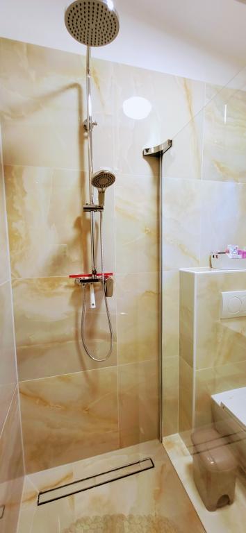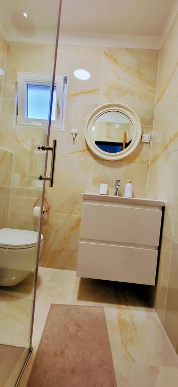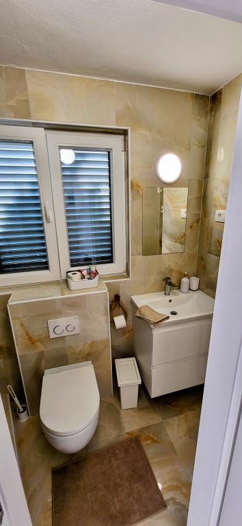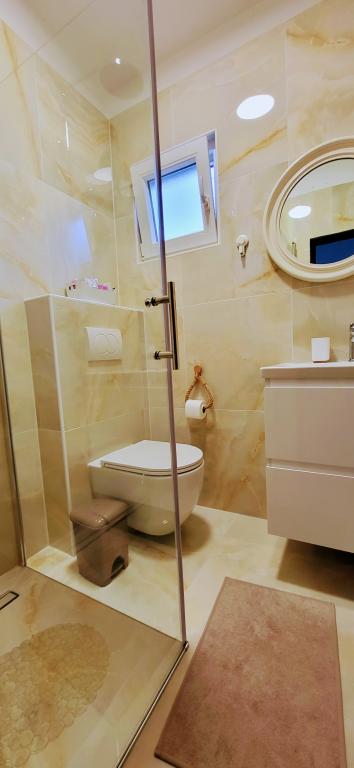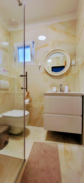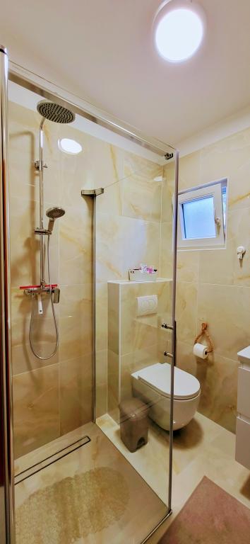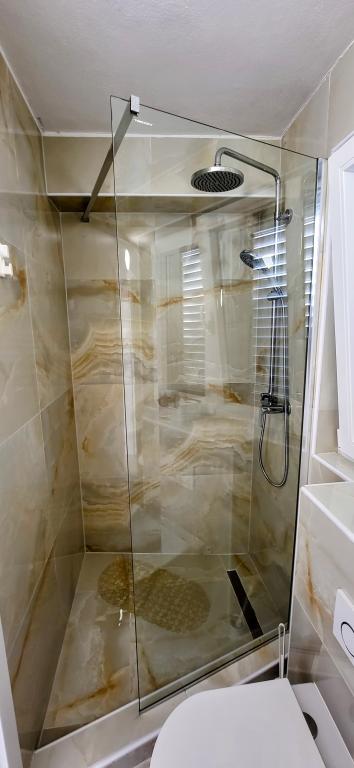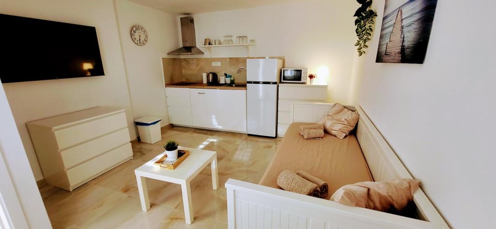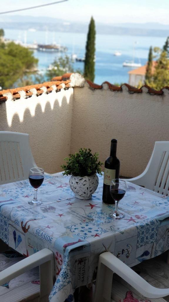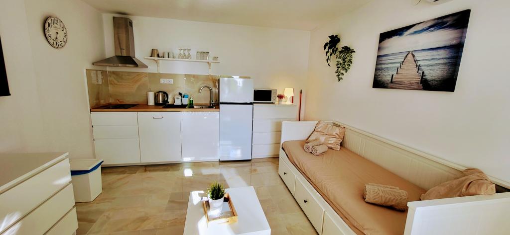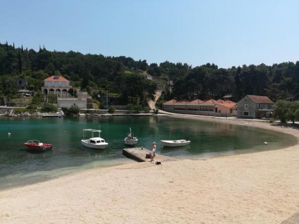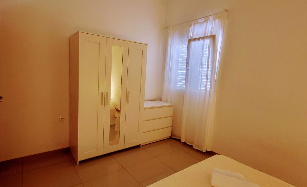 Moderně vybavený studiový apartmán. Nachází se v klidné zátoce, pouhých 80 m od oblázkové pláže. Skládá se z ložnice s manželskou postelí (160x200 cm), koupelny se sprchovým koutem, kuchyně a obývacího pokoje s jídelním koutem. V obývacím pokoji je rozkládací postel (160x200 cm). Apartmán má klimatizaci, smart TV, bezplatné Wi-Fi, parkování a vlastní terasu. Gril a venkovní sprcha na místě.