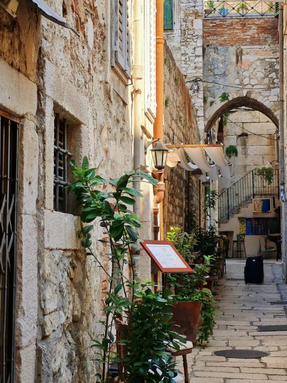 Studio pro dvě osoby se nachází v klidné části města Split, v blízkosti lesoparku Marjan a nedaleko centra města. Parkování je veřejné u apartmánu, zdarma. V okolí se nachází zařízení jako pláže v lesoparku, běžecká dráha, restaurace, sportovní zařízení, obchody, možnost městské dopravy, tržnice. Byt se nachází v přízemí obklopeném zelení. Bezbariérový přístup je možný z ulice. V bytě se nesmí kouřit.